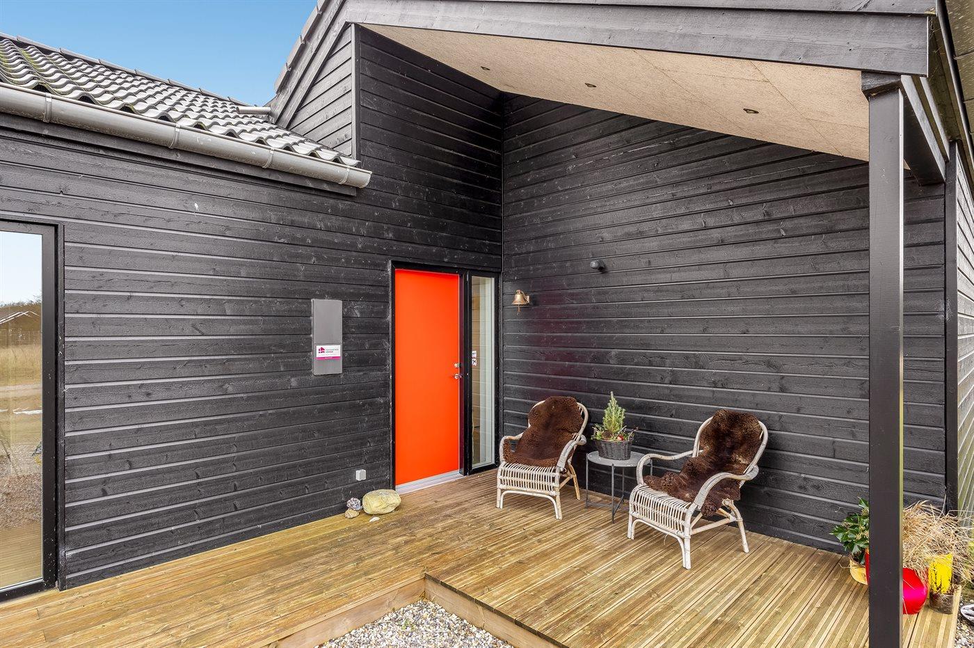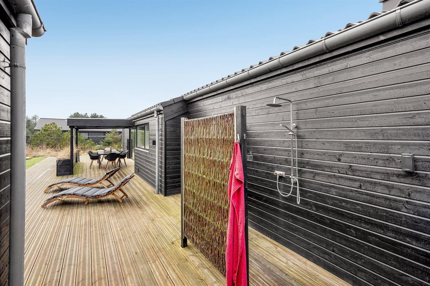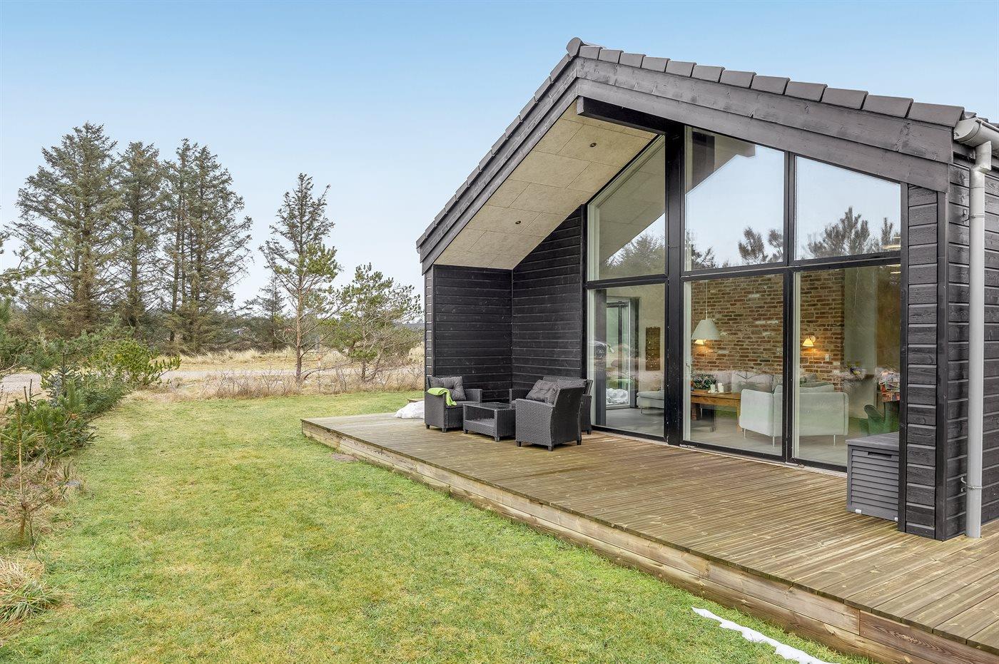 Ferieboligen er beliggende på en 2548 m² stor naturgrund. Der er 900 m til havet. Nærmeste forretning er beliggende i en afstand af 1200 m. Til ferieboligen hører åbent terrasseareal. Desuden er der overdækket terrasse. Gynge. Sandkasse. Bålsted. Shelter. Udendørs bruser. Grill til rådighed. Parkering ved ferieboligen.