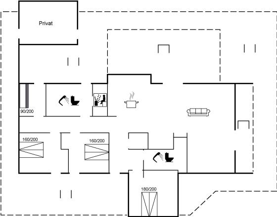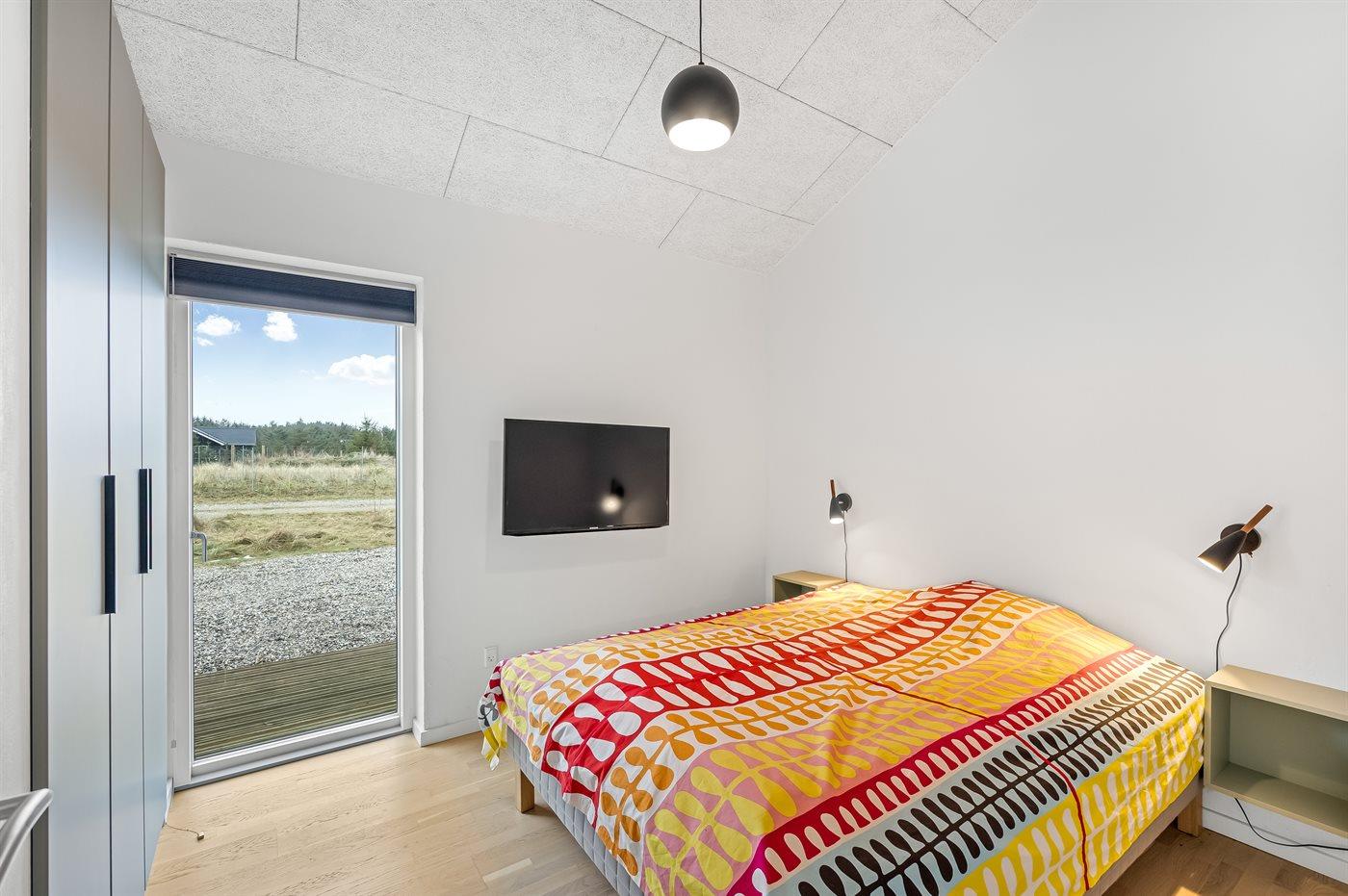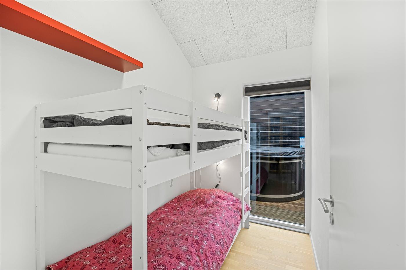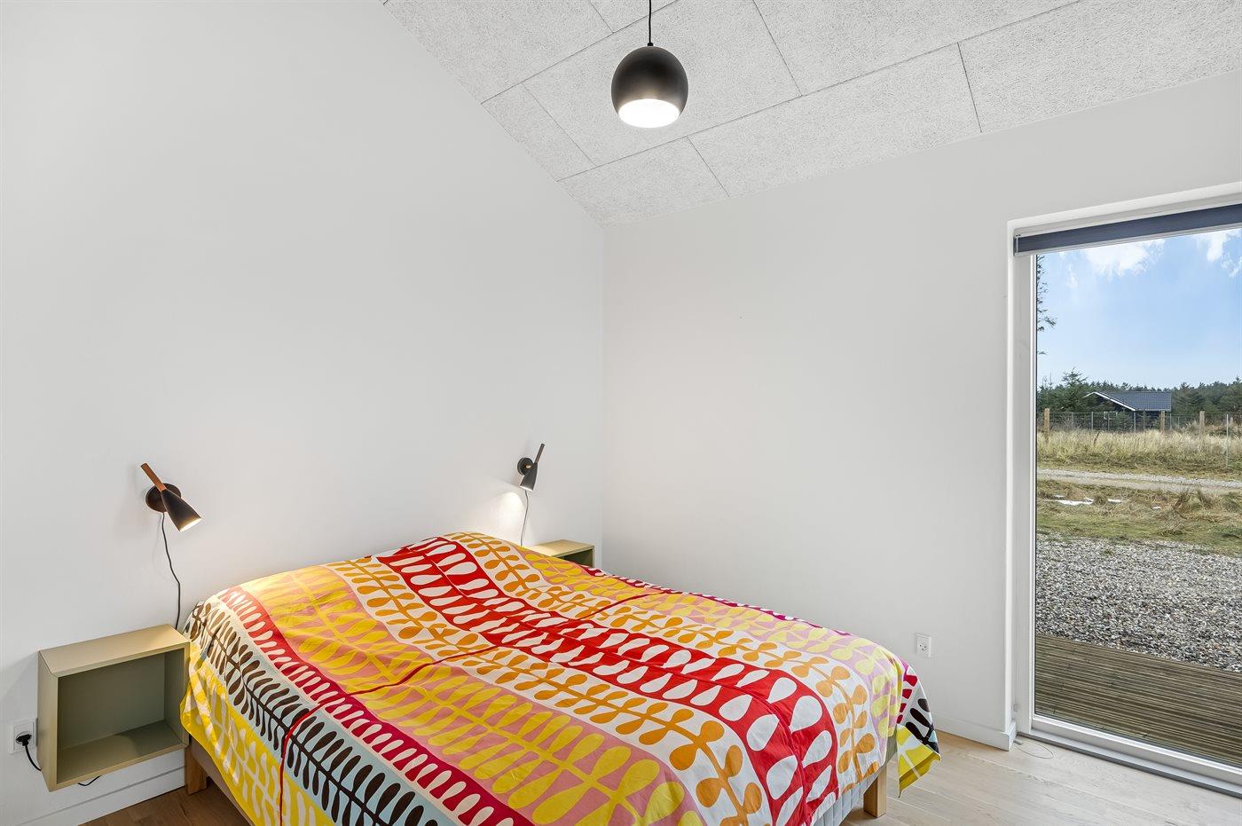 Der er i alt 4 soveværelser. Sovepladserne fordeler sig på: 6 sovepladser i dobbeltsenge. 2 sovepladser i enkeltsenge.