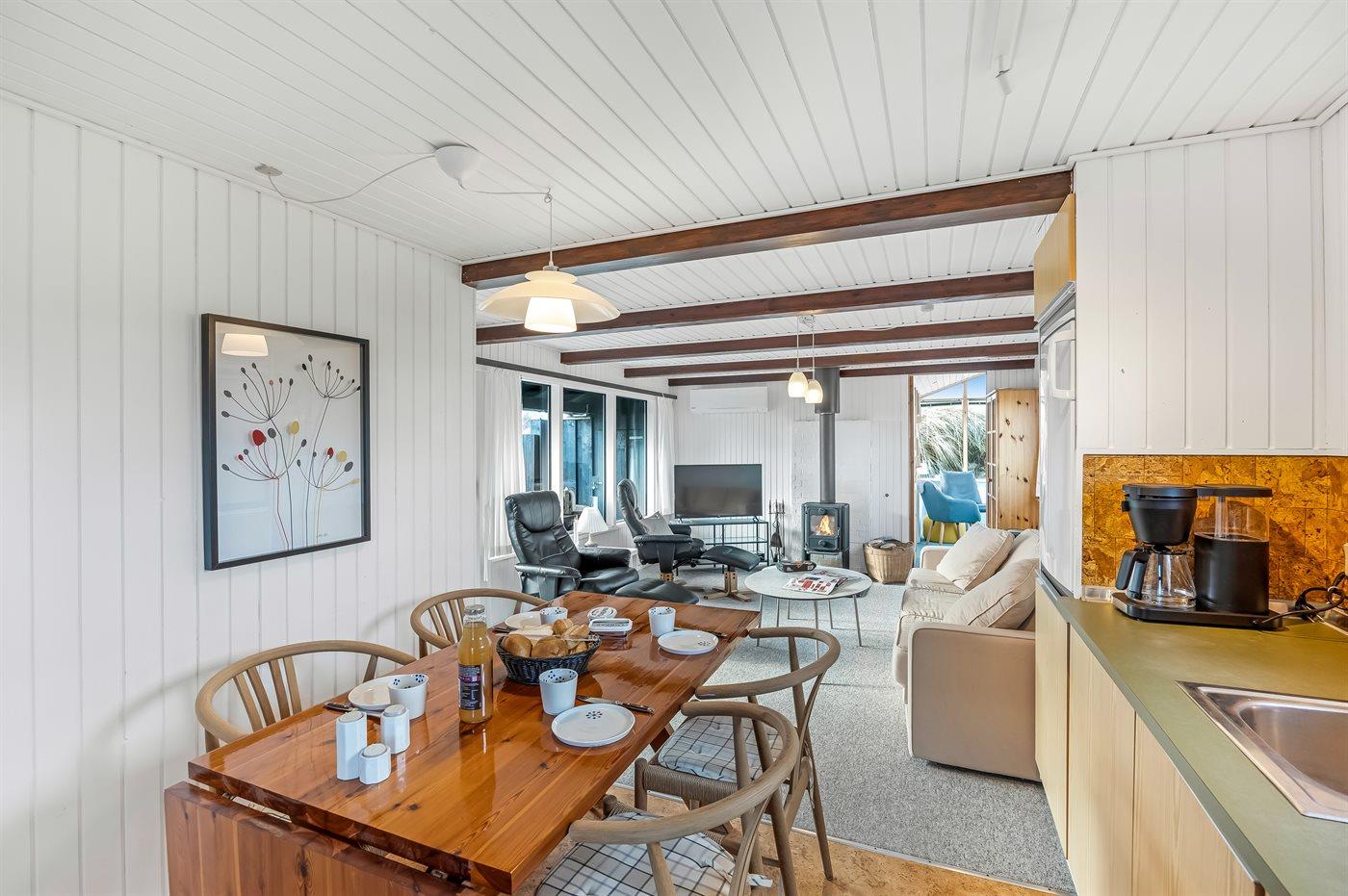 Sommerhuset er istandsat i 2026 med fokus på komfort og kvalitet. Køkkenet er opdateret med ny induktionskogeplade, ny Siemens ovn og nyt køleskab med indvendigt fryserum. Derudover er der nye spisebordsstole, som fuldender den lyse og indbydende indretning.