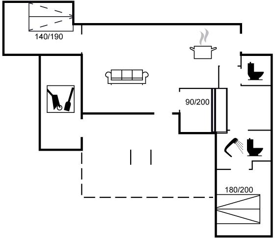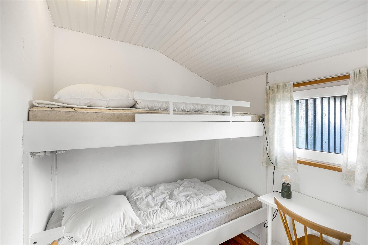 Der er i alt 2 soveværelser. Sovepladserne fordeler sig på: 2 sovepladser i dobbeltseng. 2 sovepladser i køjeseng. 2 sovepladser i sovesofa (enkelt). 2 af disse sovepladser befinder sig i stuen.