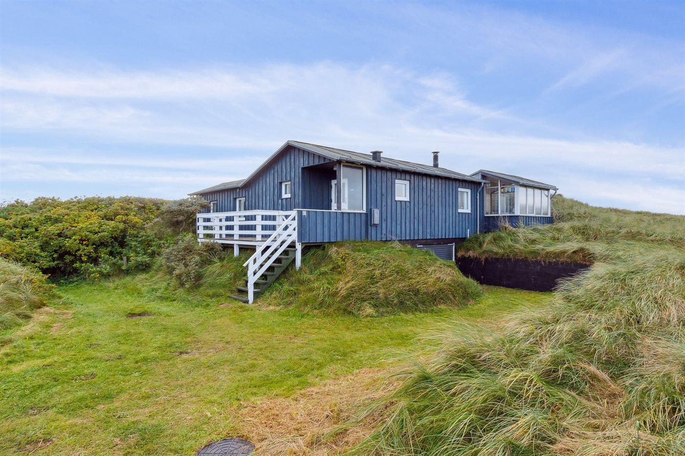 Ferieboligen er beliggende på en 2698 m² stor klitgrund. Der er 150 m til havet. Nærmeste forretning er beliggende i en afstand af 3500 m. Til ferieboligen hører åbent terrasseareal. Desuden er der overdækket terrasse. Der er redskabsrum. Grill til rådighed. Parkering ved ferieboligen.