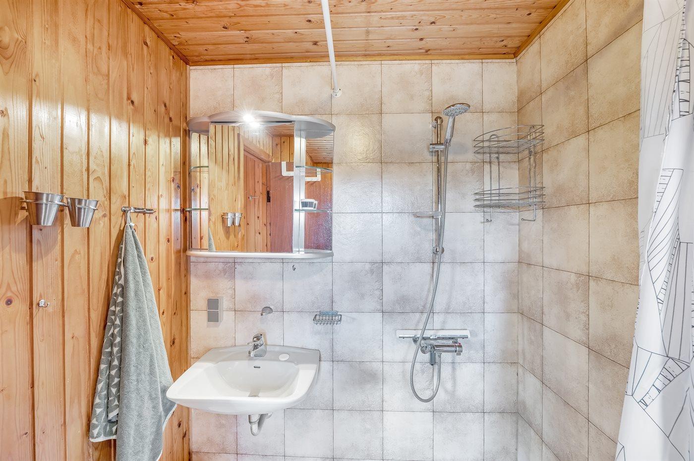 Der er 1 badeværelse med bruser og 1 toilet.. Der er gulvvarme på 1 badeværelse.