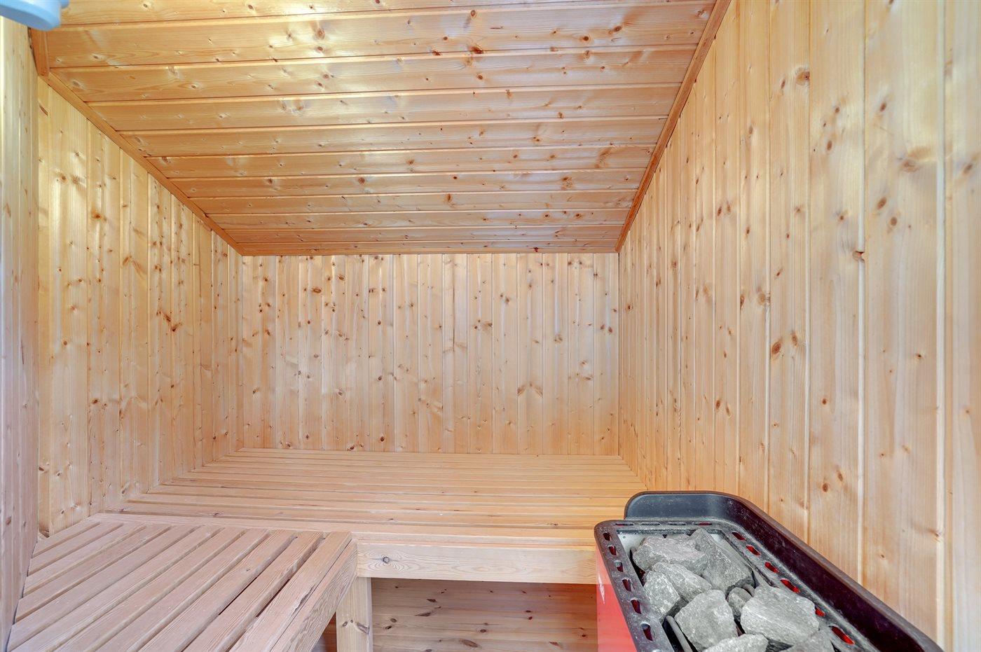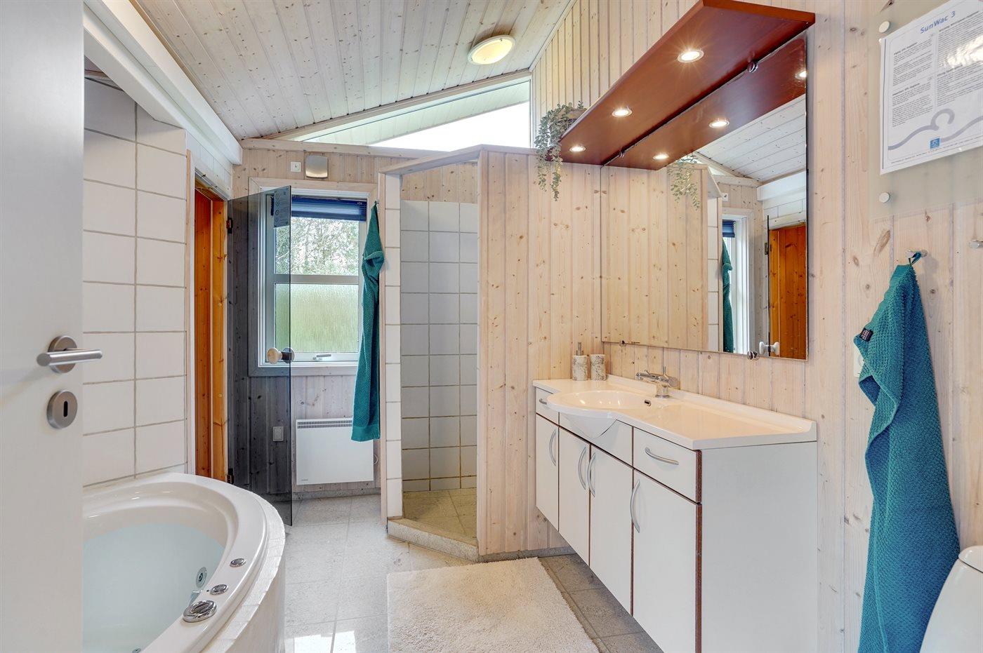Der er et badeværelse med bruseniche og toilet. Desuden er der sauna samt en spa til 2 personer og der er således fine muligheder for wellness og afslapning.