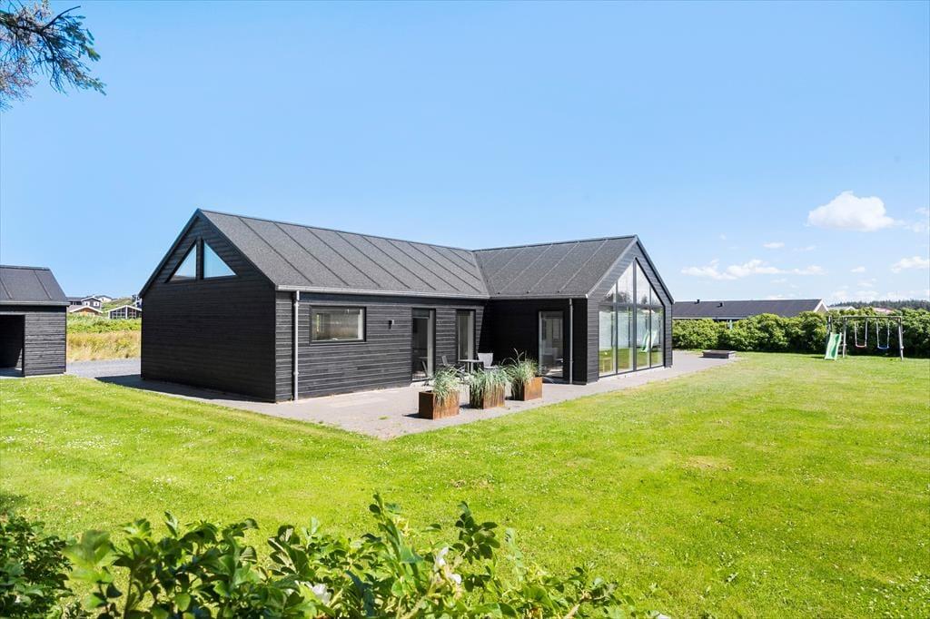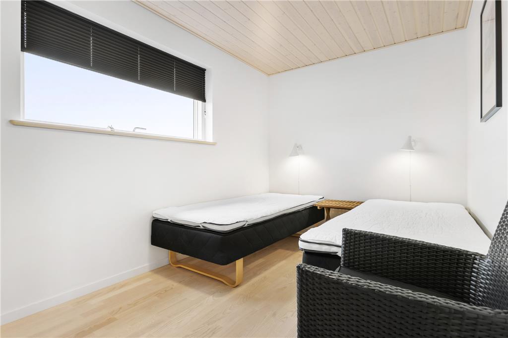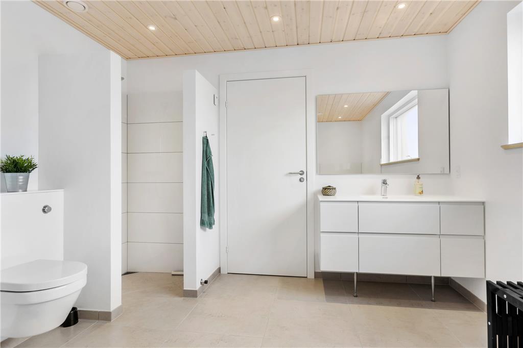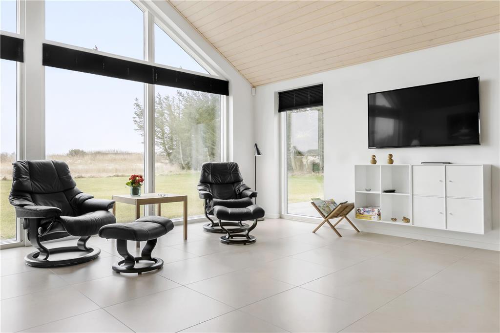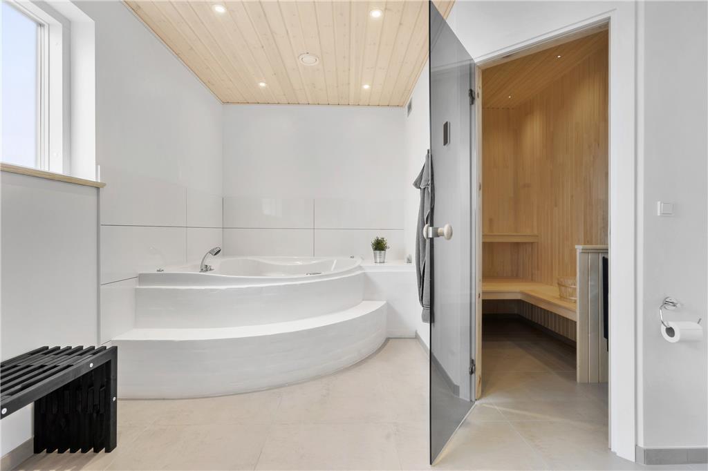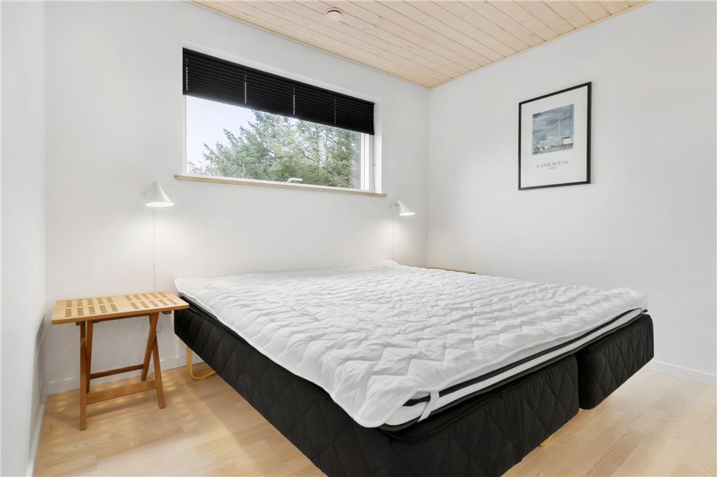 Dette kvalitetssommerhus fra 2018 byder på særdeles god komfort og moderne faciliteter. Hele huset er lyst og venligt indrettet og fordelingen af rummene med to soveværelser i hver ende, gør sommerhuset særdeles velegnet til to familier, eller hvis man har større børn eller teenagere med på ferien, som gerne vil kunne trække sig lidt tilbage. Udover soveværelserne råder sommerhuset over et flot og åbent køkken med gode hårde hvidevarer, et lyst opholdsrum med spisebord, sofaarrangement og stort fjernsyn. Der er to badeværelser, hvoraf det ene har spabad og en sauna, hvor I kan få varmen efter en frisk gåtur ved stranden. Huset er topisoleret og hører til i den energivenlige klasse og har jordvarme i alle rum. Generelt et meget indbydende hus i høj kvalitet