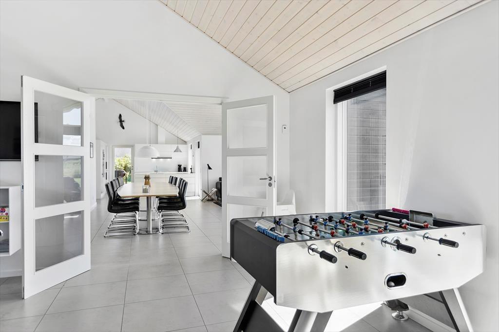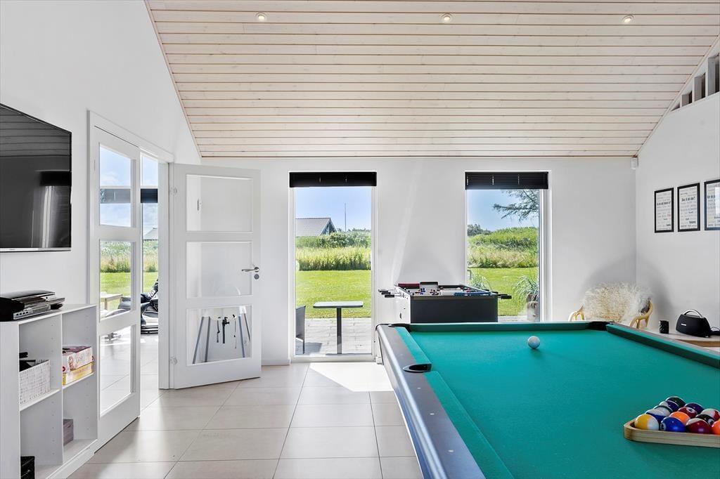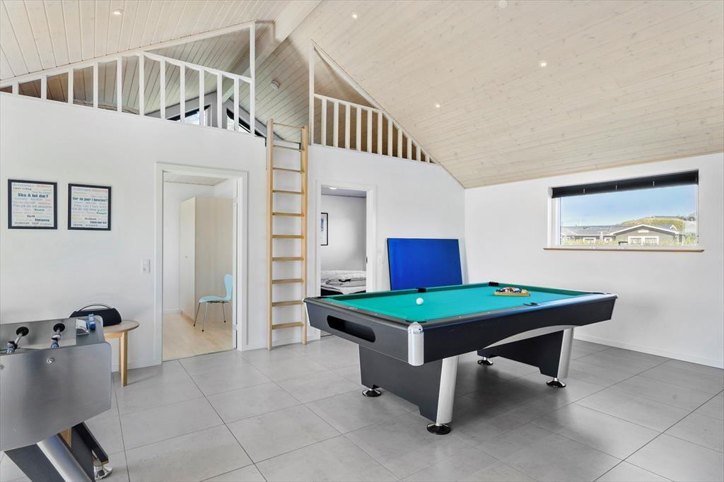 Fra stuen er der adgang til et sjovt aktivitetsrum, hvor børn og barnlige sjæle helt sikkert nemt kan få mange timer til at gå. Her er tv med dvd-afspiller og PlayStation 3 samt bordtennis, billard og bordfodbold. Et skønt rum, som også gør sommerhuset velegnet til ferie udenfor den varme højsæson og mulighed for konkurrencer familien imellem.