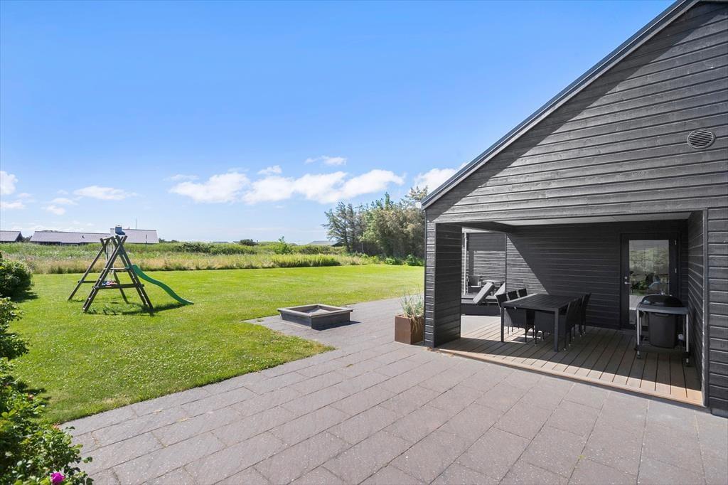 Sommerhuset ligger på en stor og plan plænegrund, så I har et godt overblik over børnene mens de leger i sandkassen eller tager en rask fodboldkamp på græsset. Det store terrasseareal går hele vejen rundt om huset, så der er masser af solmuligheder. Den overdækkede del er ideel til afslappende stunder og hyggelige grillaftener, eller hvis solen er skarp og børnene gerne vil lege i skyggen. Der er havemøbler, solstole og grill til rådighed.