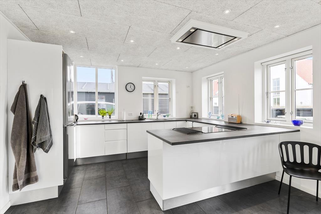 Velkommen til en kombineret by- og badeferie i luksuriøse omgivelser i et af Nordjyllands og Danmarks bedste ferieområder ved Løkken. Huset er tegnet af arkitekt Jørgen Ussing og fordeler sig over to plan; Stueetagen indeholder et moderne køkken med alt i hvidevarer og i åben forbindelse med stuen, som med sine store vinduespartier trækker lyset og himlen ind i boligen, så du i ro og mag kan opleve Vestkystens unikke lys og de skiftende årstiders mange nuancer. Den massive egetræs-trappe fører dig til overetagen med 3 værelser og et lille repos med loft til kip. Der er bad og toilet på begge plan og huset er generelt flot, lyst og moderne indrettet. Medbring gerne tablets hjemmefra, så kan man benytte sig af det trådløse netværk, der helt sikkert vil falde i god jord hos børn og teenagere.