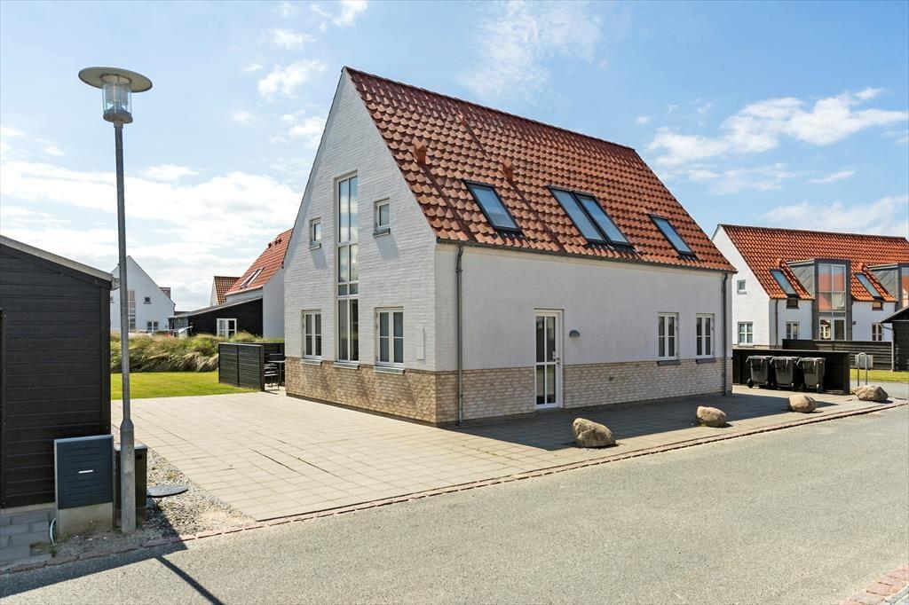 Flot arkitektegnet hus fra 2017 i to etager med 5 min. gang til centrum og 300 meter til Vesterhavet.