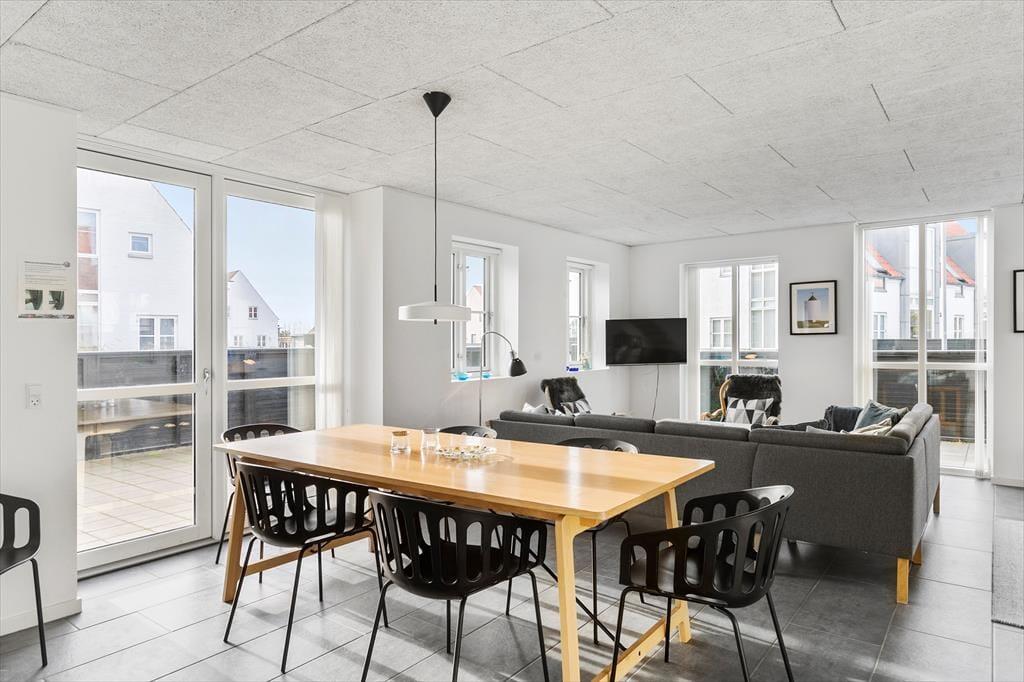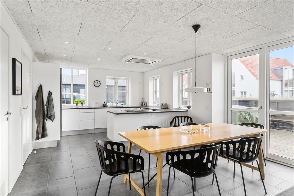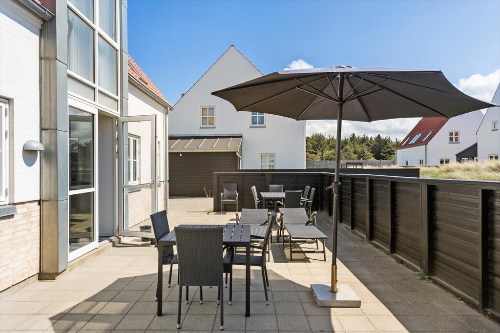 Fra stuen er der udgang til en dejlig stor terrasse, hvor man kan nyde det danske sommervejr fuldt ud. Huset beliggenhed lige udenfor Løkken centrum, gør at man er dejlig tæt på det hele, og alligevel i god afstand fra trafik og larm fra byens liv. Der er naturligvis havemøbler, liggestole og grill til rådighed.