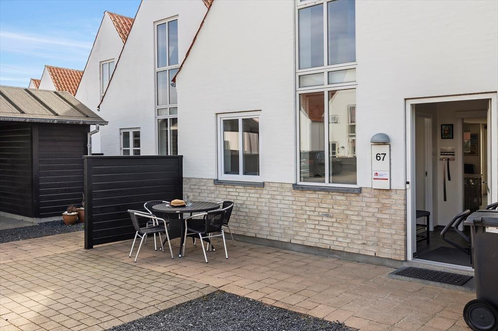 På en lille, lukket vej centralt i Løkken finder I denne skønne feriebolig. På såvel stueplan som førstesalen er rummene lyse og lækkert indrettet, og den sydvendte terrasse er et herligt sted at nyde solskinsvejret.