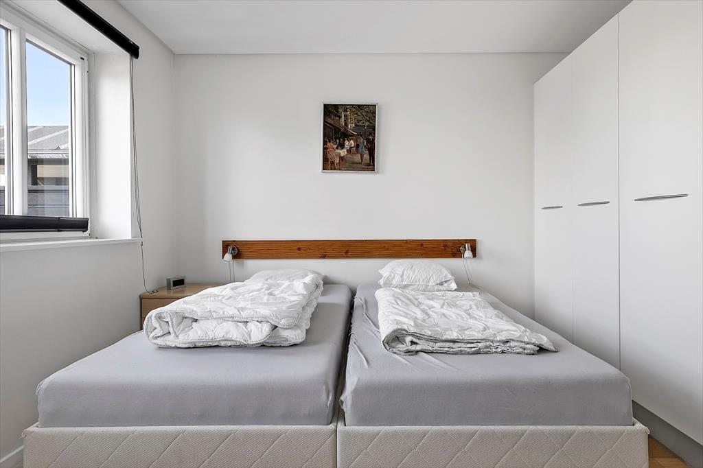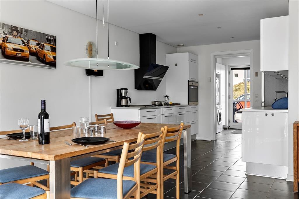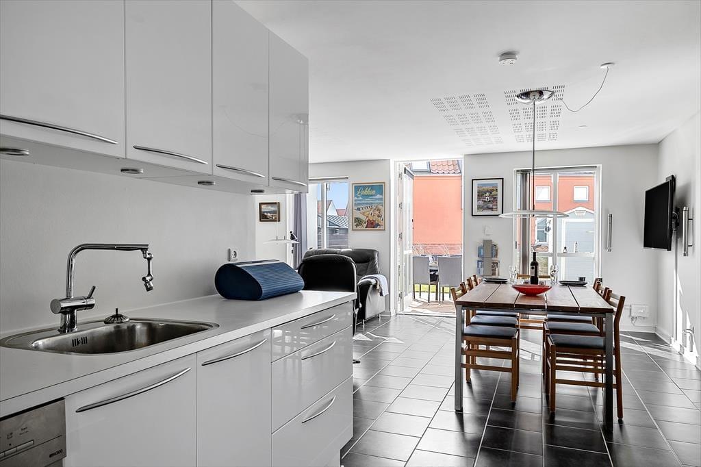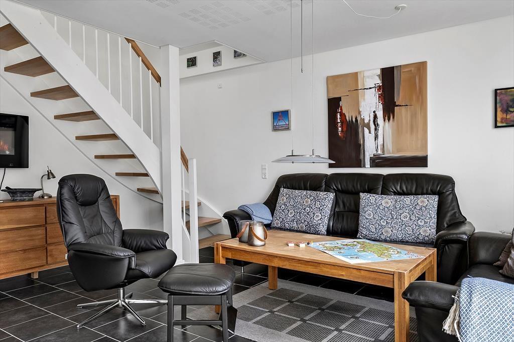 Ferieboligen ligger som del af et kønt kædehusbyggeri fra 2007. Inden døre er lysindfaldet godt, og akustiklofterne og den lyse farvesætning bidrager til den behagelige rumfornemmelse. I stueplan er opholdsrummet indrettet, så I hurtigt kan føle jer hjemme: Her er en komfortabel sofaafdeling, spisebord til seks personer og en åben køkkenafdeling med god plads til at kokkerere. En entré med vaskefaciliteter, et pænt badeværelse og et soveværelse hører også med til planløsningen, mens førstesalen byder på yderligere to soveværelser og et ekstra badeværelse. Alt i alt får I altså en super planløsning, der både egner sig til familieferien og hyggeturen med gode venner.