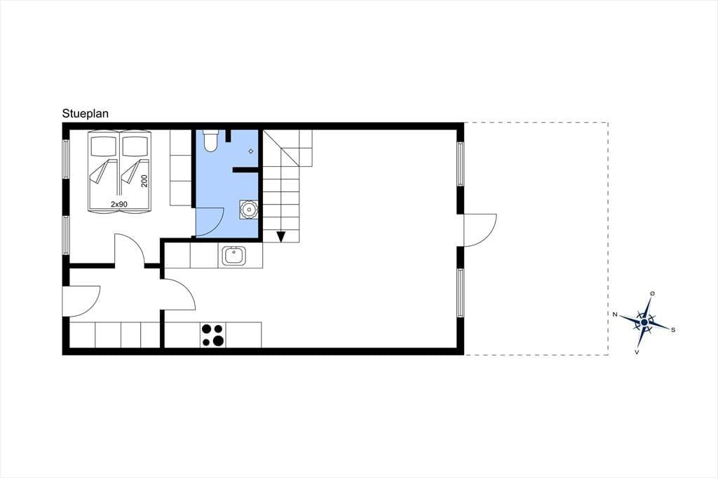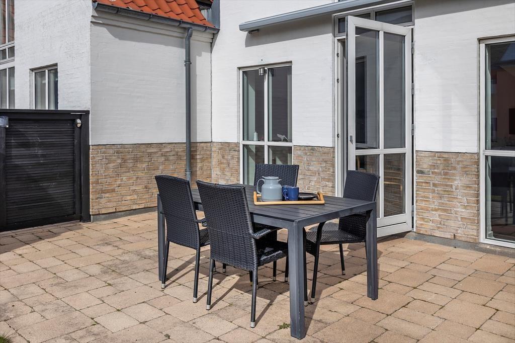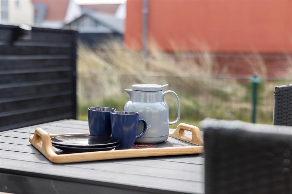 Fra stuen er der direkte adgang til et dejligt sydvendt havestykke, som er helt aflukket med plankeværk og hegn – hvilket er ganske praktisk, hvis I har husdyr med på ferien. På havens store terrasse er der havemøbler, liggestole, grill og parasol til rådighed, så I kan finde jer godt til rette og nyde det afslappende udendørsliv. I kan desuden slå jer ned i havemøblerne foran huset, hvor der også er plads til at parkere bilen.