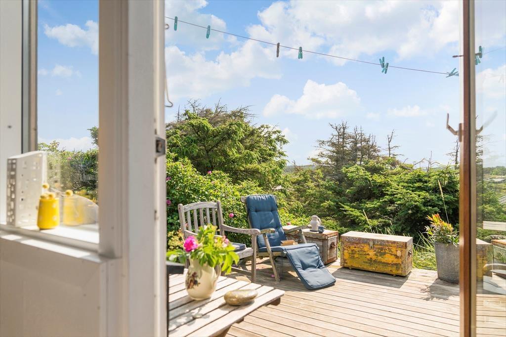 Det kønne træsommerhus har ligget her i klitterne siden 1936, og både inde og ude kan det tydeligt ses, at der er blevet taget godt hånd om det lige siden. De velholdte rum er moderniseret på smagfuld vis, og møbleringen passer perfekt til den klassiske arkitektur og de skønne naturomgivelser, som vinduespartierne åbenbarer til alle sider. Hyggestemningen er i top overalt, også på de tre soveværelser og i køkkenet – ja, selv badeværelset er gennemført indrettet med lyse farvetoner og hyggeskabende detaljer. Bedst af alle rum er nu næsten stuen, som er et skønt opholdsrum med brændeovn, store vinduer, et skønt lysindfald og endda havudsigt.