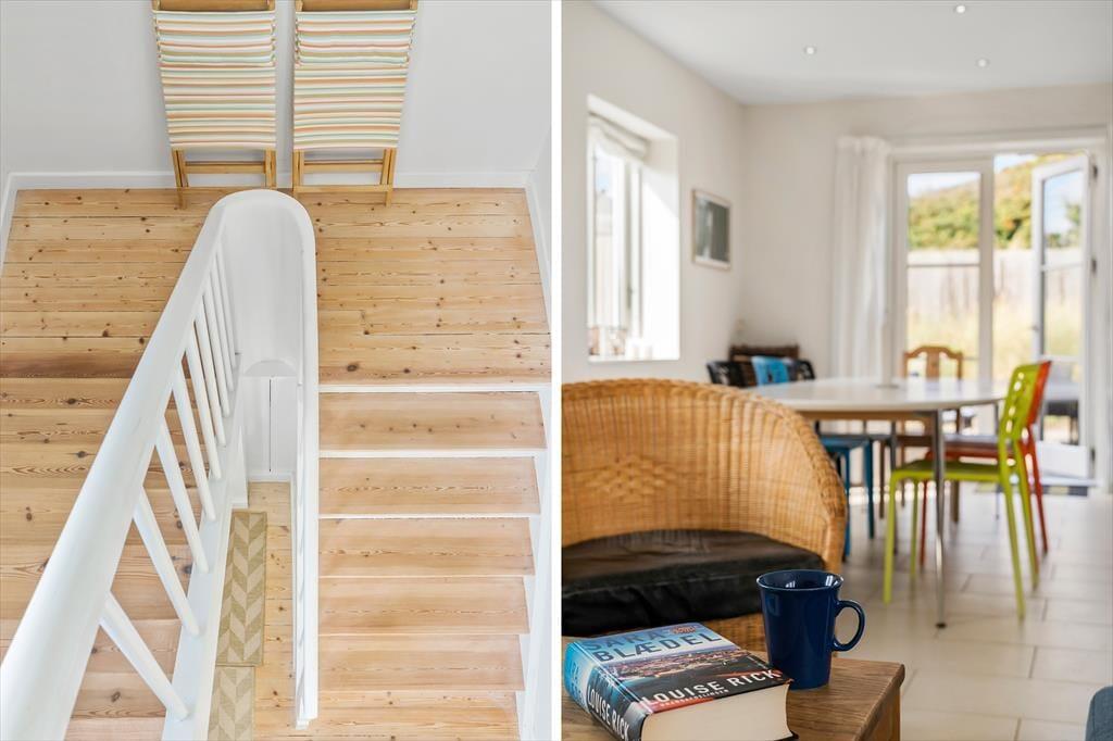 Da sommerhuset blev renoveret i 2005, gik man grundigt til værks, hvilket blandt andet kan ses på det moderne indrettede køkken. Det ligger i åben forbindelse med en stor og lys stue, som udover pænt møblement også er udstyret med et fladskærms-TV med Chromecast. En anden dejlig detalje er, at der er gulvvarme – ikke bare her i opholdsafdelingen, men også på husets gæstetoilet og to badeværelser. Soveværelser er der tre af, og de er placeret både i stueplan og på førstesalen, så I kan fordele jer på den mest hensigtsmæssige måde.