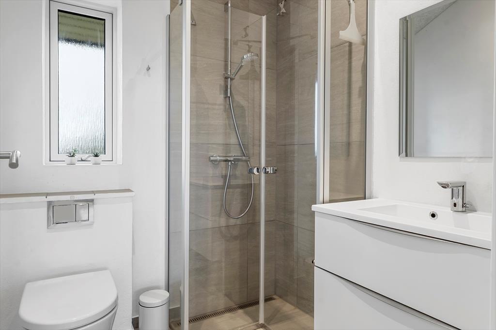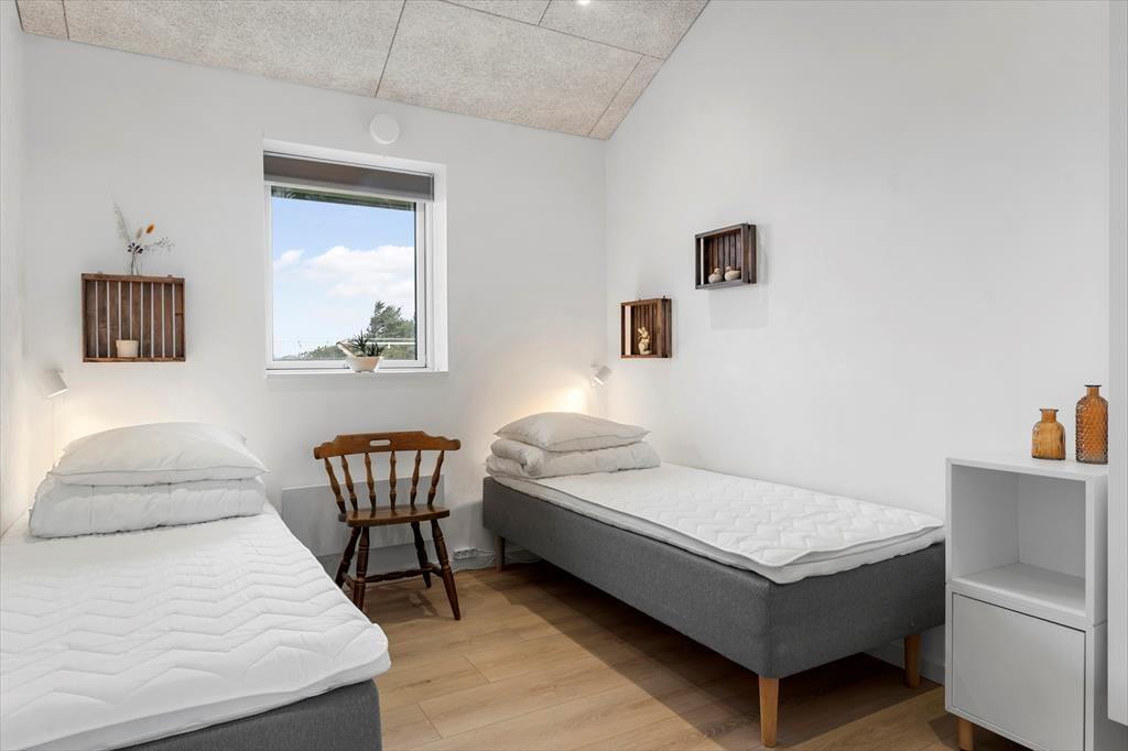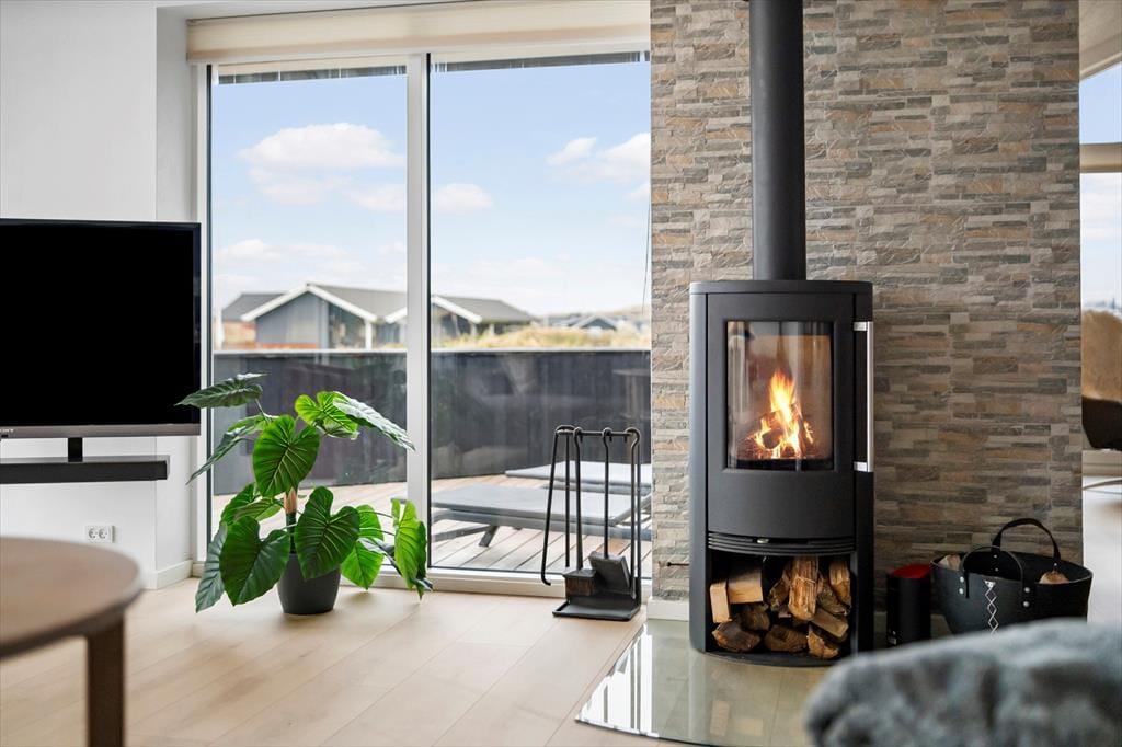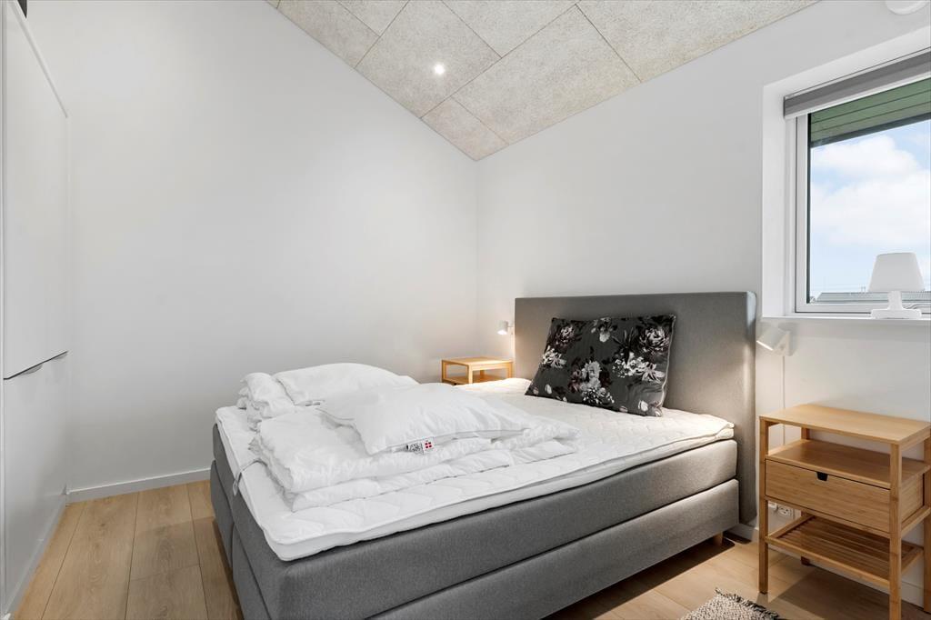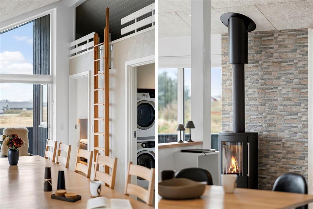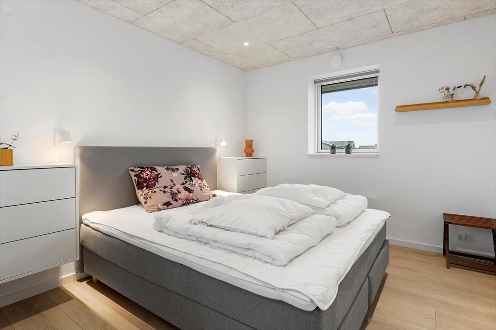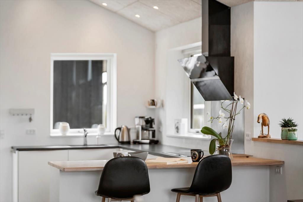Det kønne sommerhus måler 118 m2, og dertil kommer et anneks på 10 m2, så I kan nemt og bekvemt samles otte personer her på adressen. At der er tale om et tjekket nybyggeri kan tydeligt ses og mærkes inden døre, hvor lyse farvetoner, ordentlige kvalitetsmaterialer og moderne møbeldesign går hånd i hånd. Opholdsafdelingen imponerer med store vinduespartier, flot loftshøjde og åben forbindelse mellem køkken og stue – og både brændeovnen og det store fladskærms-TV med Chromecast er med til at skrue op for hyggestemningen. To badeværelser hører med til planløsningen foruden tre soveværelser, og i annekset finder I det fjerde soverum.