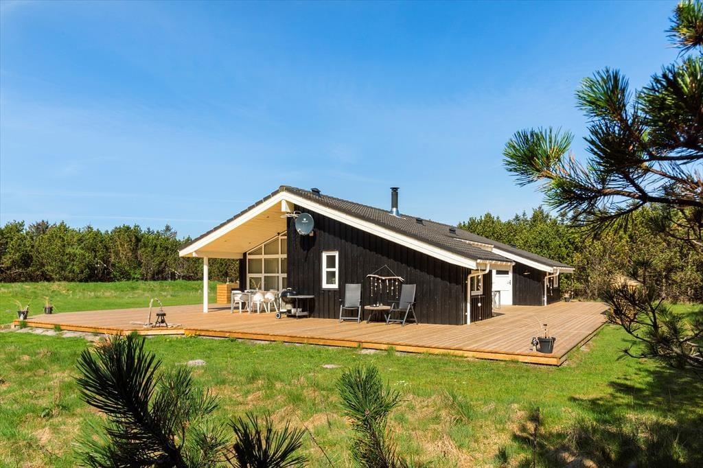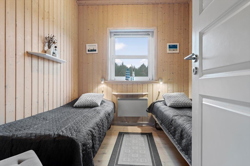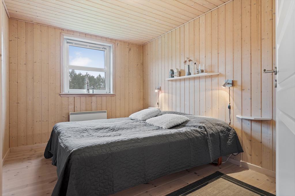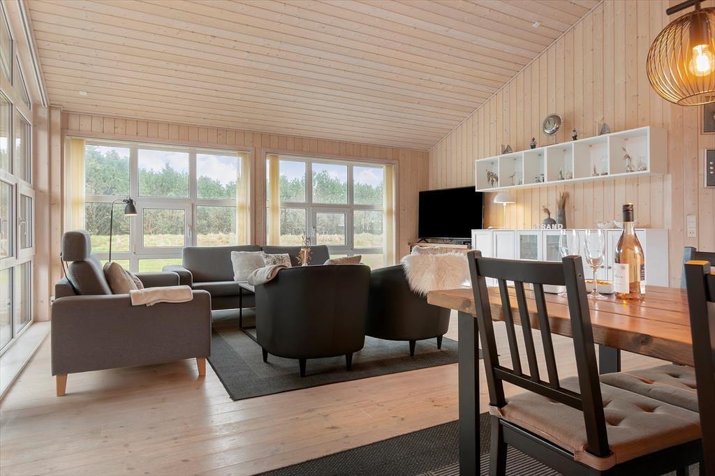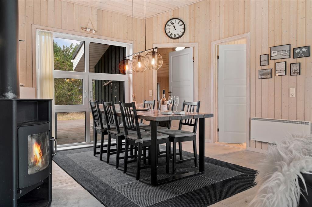 Det 116 m2 store sommerhus har en lys og venlig atmosfære, og indretningen er perfekt udformet til otte personer. Både børn og voksne kan hurtigt føle sig hjemme her: I det store opholdsrum, hvor stue og køkken ligger samlet, kan I hygge jer med ild i brændeovnen og et lækkert måltid mad omkring spisebordet – og bagefter kan I slå mave i sofaafdelingen. Skal der virkelig slappes af, kan I tænde for saunaen og fylde spabadet, der står på det største af husets to badeværelser. Og efter en dejlig feriedag fuld af hygge, velvære og udflugter i Løkkens naturskønne omgivelser, kan I se frem til en god nats søvn på sommerhusets fire værelser.