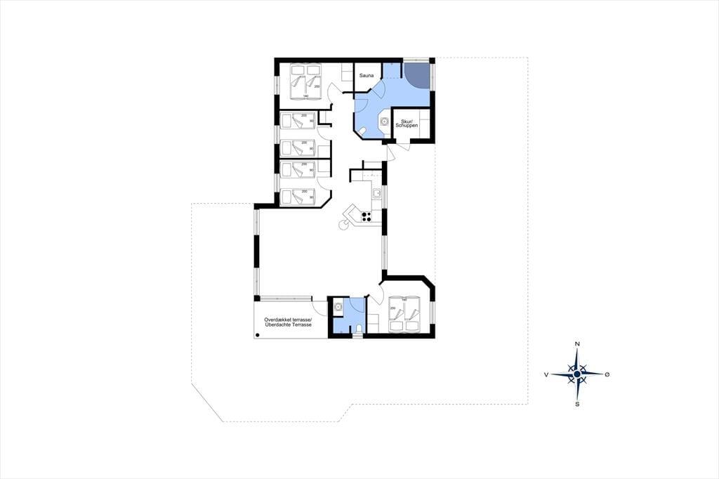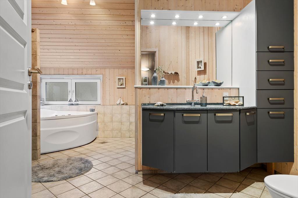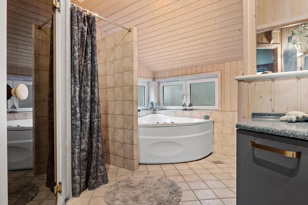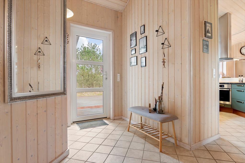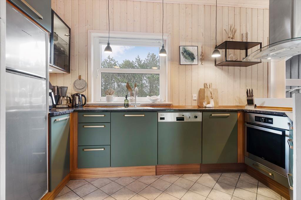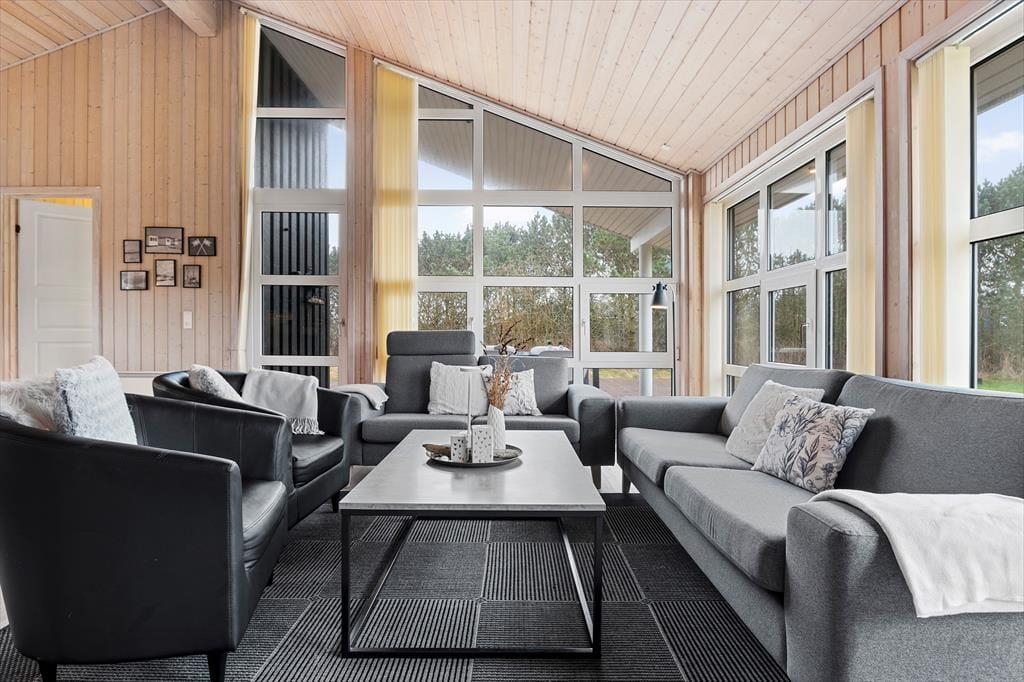 Det 116 m2 store sommerhus har en lys og venlig atmosfære, og indretningen er perfekt udformet til otte personer. Både børn og voksne kan hurtigt føle sig hjemme her: I det store opholdsrum, hvor stue og køkken ligger samlet, kan I hygge jer med ild i brændeovnen og et lækkert måltid mad omkring spisebordet – og bagefter kan I slå mave i sofaafdelingen. Skal der virkelig slappes af, kan I tænde for saunaen og fylde spabadet, der står på det største af husets to badeværelser. Og efter en dejlig feriedag fuld af hygge, velvære og udflugter i Løkkens naturskønne omgivelser, kan I se frem til en god nats søvn på sommerhusets fire værelser.