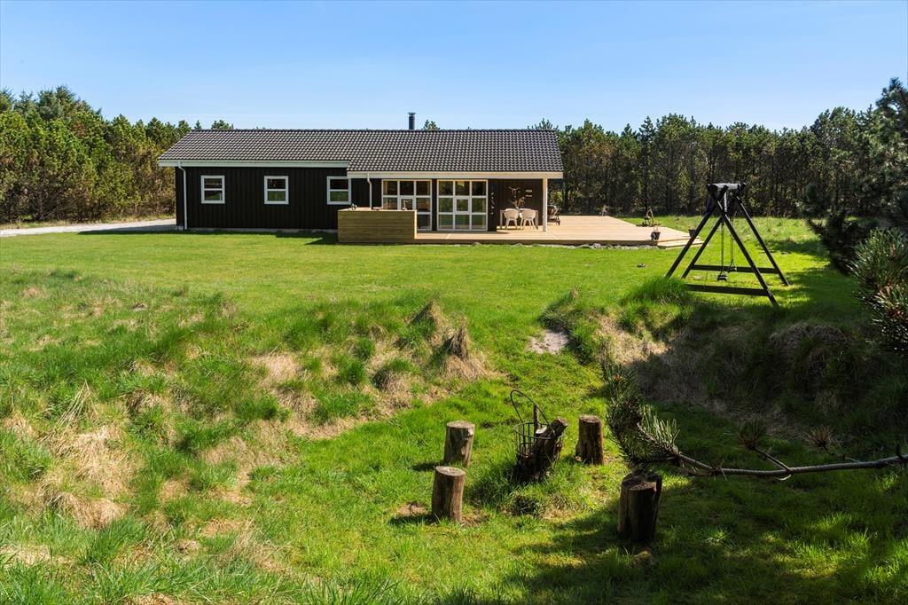 Forholdene er mindst lige så fine ude i det fri på den 2.522 m2 store grund. Randbeplantningen skærmer grunden af, så uanset om I spiller havespil på græsplænen eller soler jer på den store træterrasse, kommer det til at foregå i grønne og ugenerede omgivelser. I løbet af dagen kan de yngste feriegæster lege i sandkassen og gynge, og om aftenen kan I finde skumfiduser frem og tænde op i bålstedet.