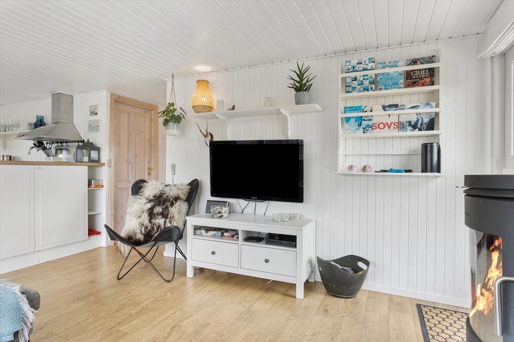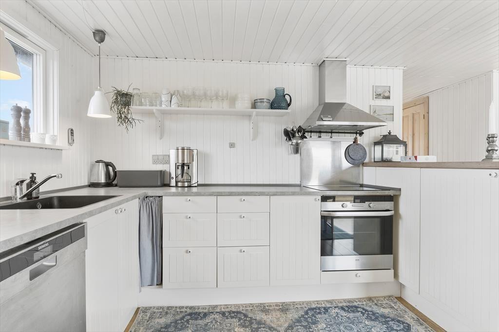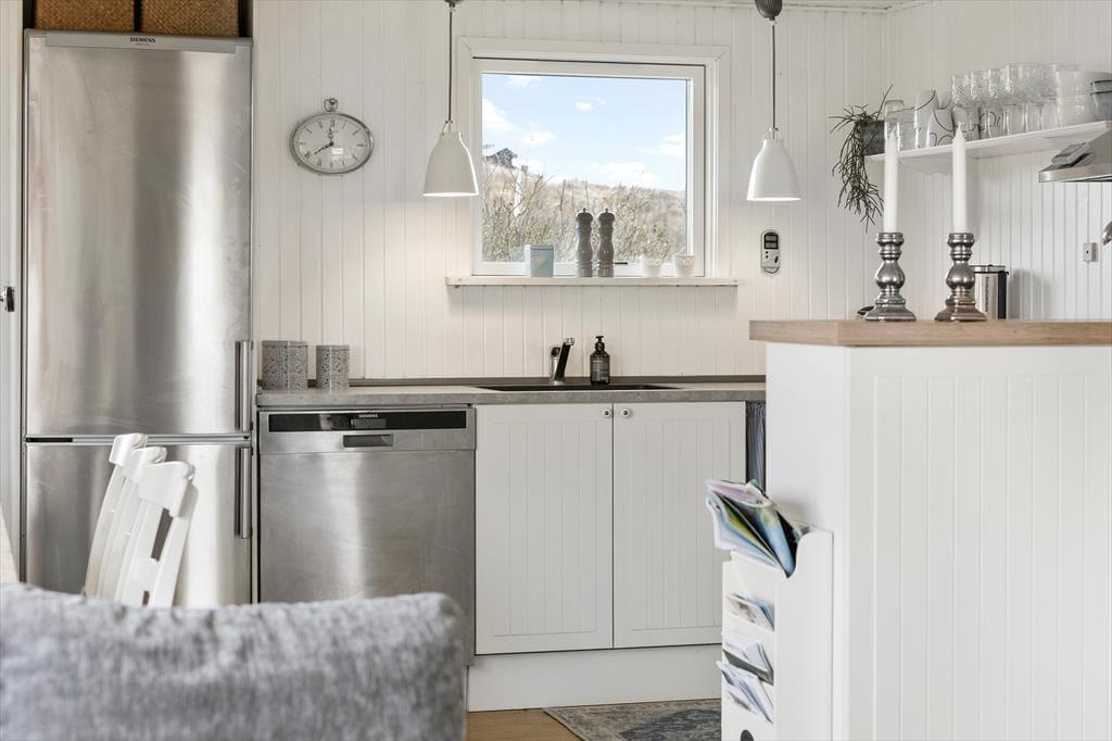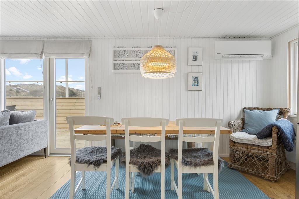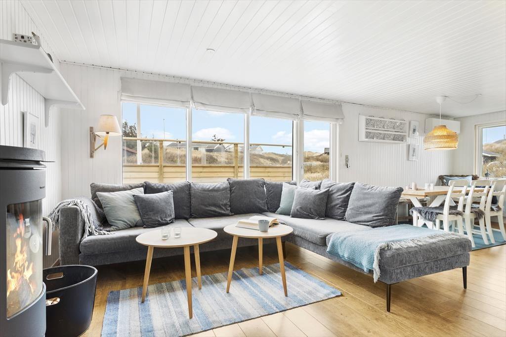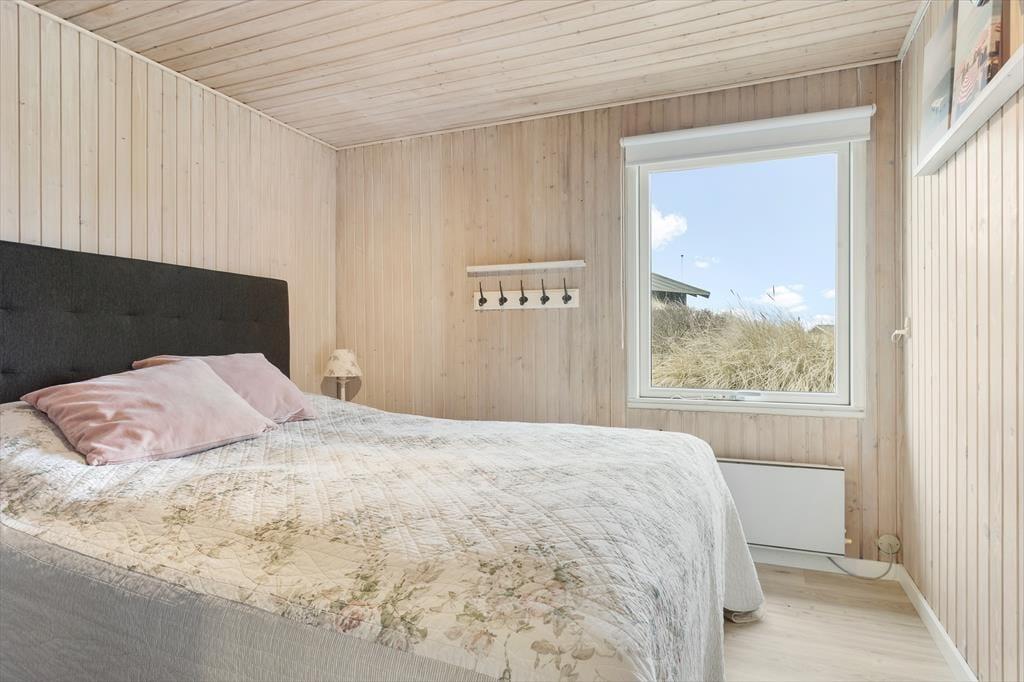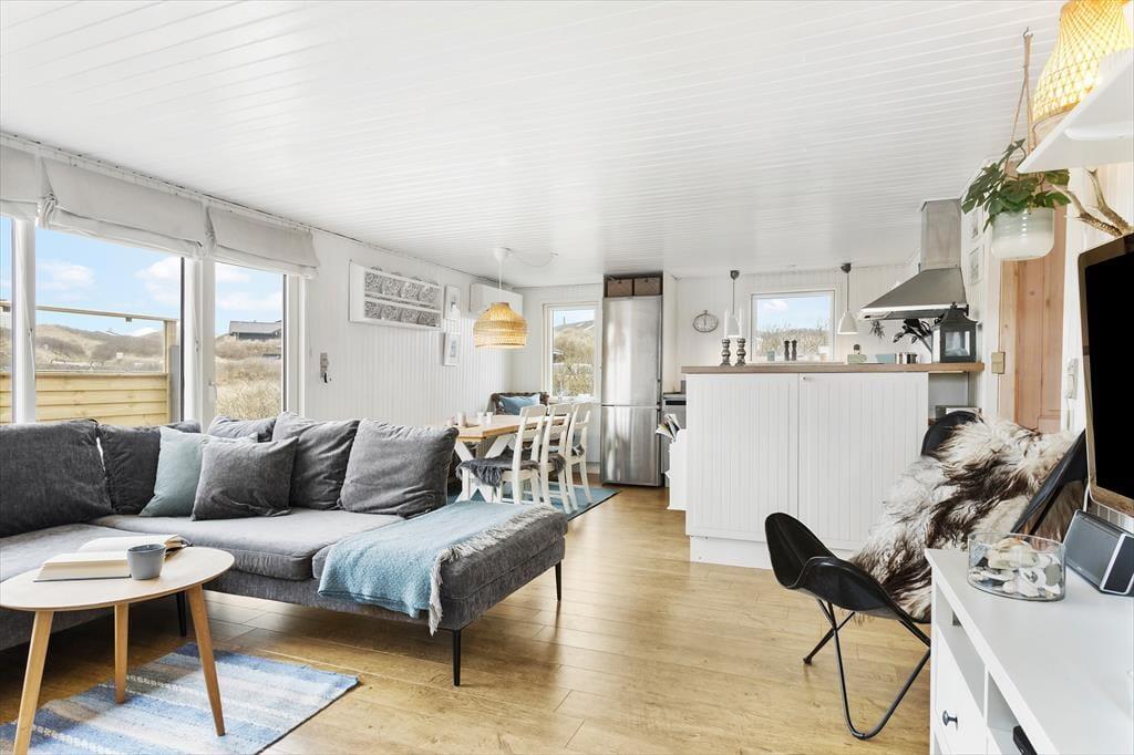 Kvadratmeterne er godt udnyttede i sommerhuset, der byder på et rummeligt badeværelse med bruseniche, tre gode soveværelser og en skøn stue med integreret køkken. Alle rum fremstår pæne og velholdte, og de lyse farvetoner er med til at give rummene en behagelig atmosfære. Stuens brændeovn har også indvirkning på hyggestemningen, når der er tændt op om aftenen, og i løbet af dagen er det skønt at kunne kigge ud på klitlandskabet – sådan en udsigt er en fin påmindelse om, at I holder ferie langt væk fra hverdagens rutiner.