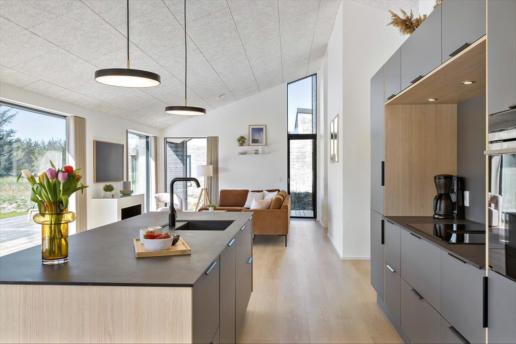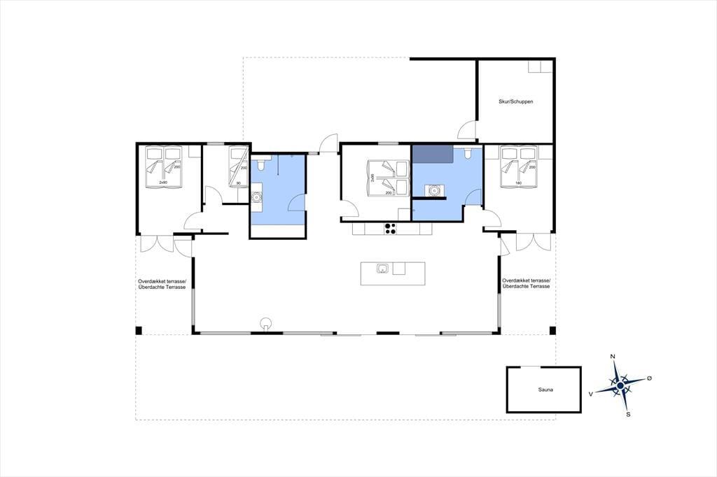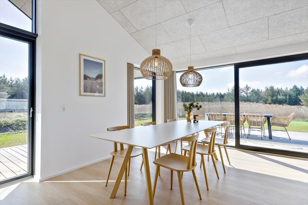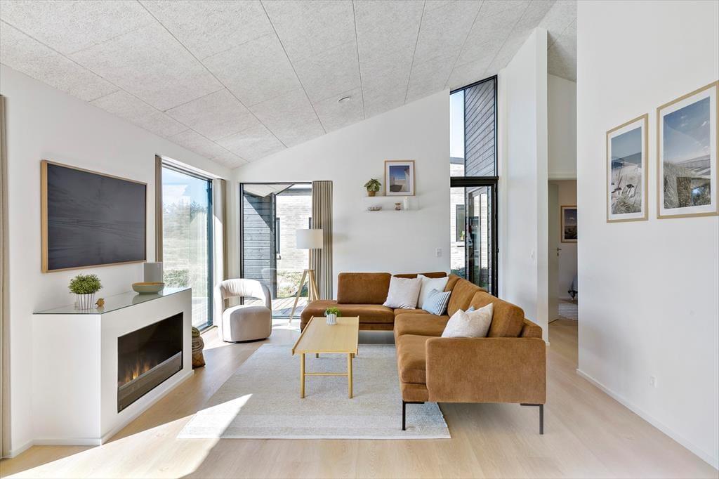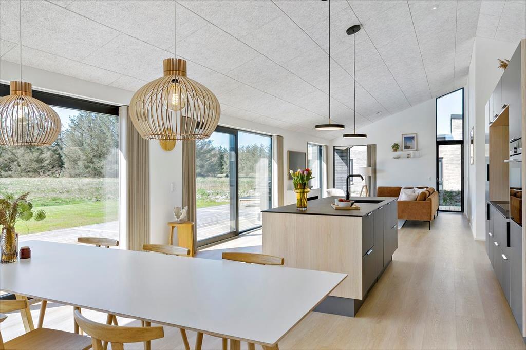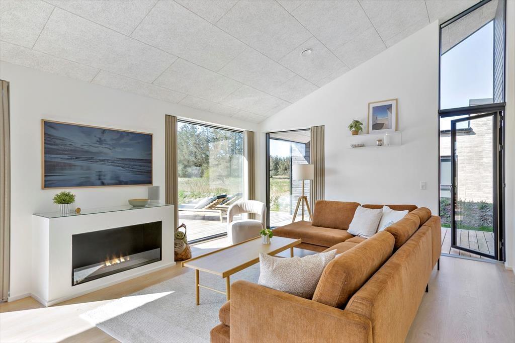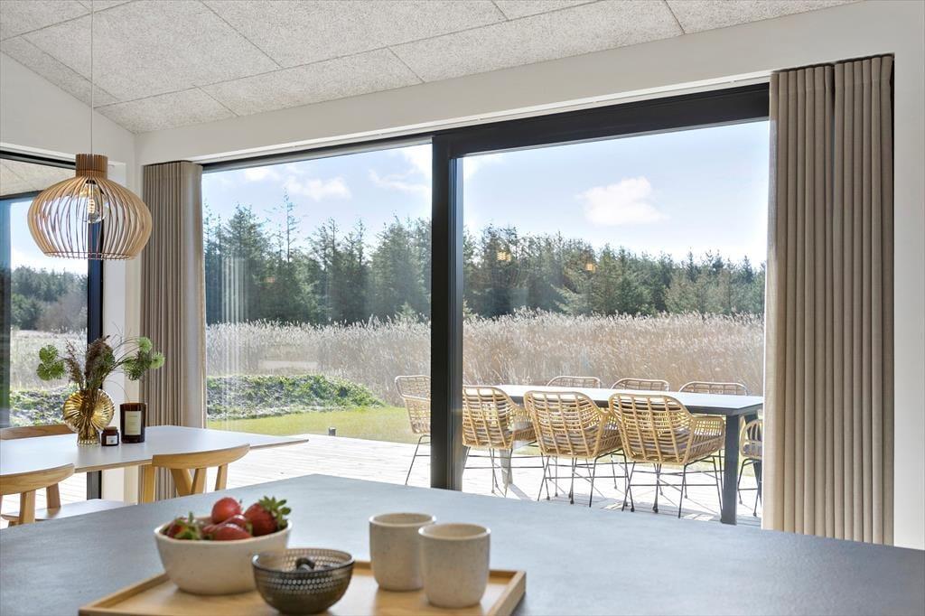 Planløsningen er perfekt afstemt til otte personer. Om natten kan I fordele jer på fire lækre soveværelser, mens dagen kan tilbringes i den smukke stue, der er indrettet med stilfuldt interiør, fladskærm, pejs og mange andre udsøgte detaljer. Køkkenet er på elegant vis integreret i opholdsrummet, så når I står og kræser om maden, får I også glæde af vinduespartiernes generøse lysindfald og den fine naturudsigt. På de to rummelige badeværelser fremgår det ligeledes tydeligt, at der er tale om et rigtigt kvalitetshus – det ene rum indbyder eksempelvis rigtigt til wellness og afslapning, for her er der både badekar og stor bruseniche.