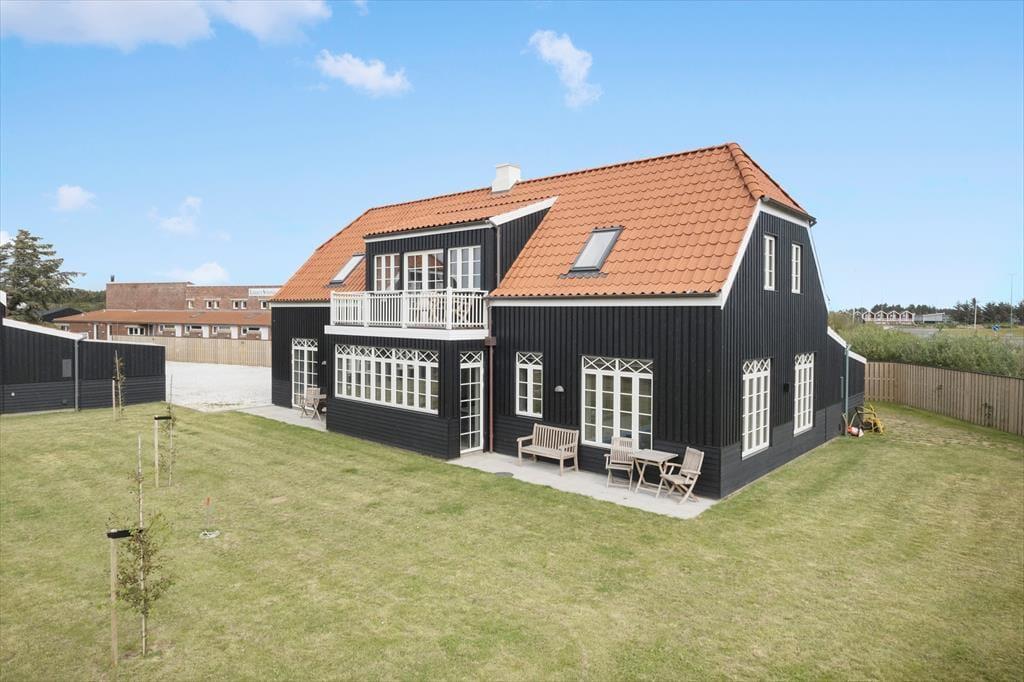 En drøm af en feriebolig står og venter på jer på Søndergade 99 i Løkken. Dette sommerhus er et nyopført kvalitetsbyggeri fra 2023, der er udstyret med en elegant poolafdeling og et udendørs spabad, og med hele seks soveværelser og tre badeværelser har I mulighed for at samles op til 12 personer inden døre.