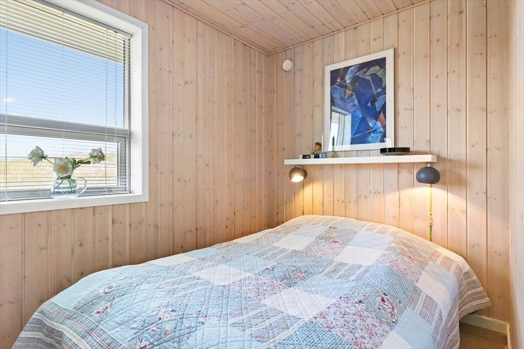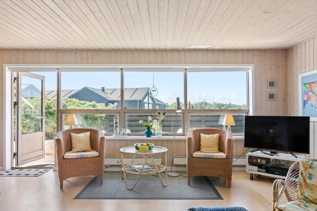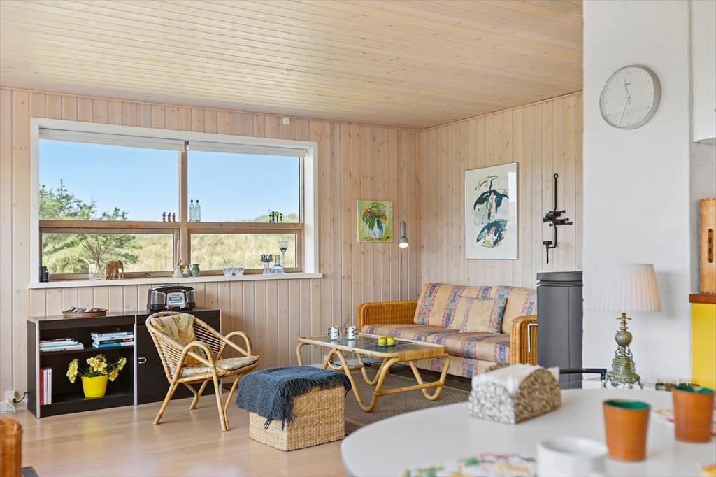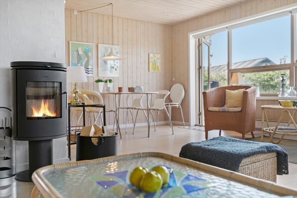Med sådan en beliggenhed er det oplagt at tilbringe en stor del af ferien på stranden eller inde i Løkkens bymidte, der ligeledes ligger i kort gåafstand. Men det er nu også rart bare at tage den med ro hjemme i sommerhuset, der emmer af hygge og charme. Selv inden døre får I glæde af den idylliske beliggenhed, for fra stuen kan I kigge ud på de marehalmsklædte klitter og den blå himmel, mens I slapper af i sofaen nær brændeovnen eller spiller brætspil ved spisebordet. Køkkenet er integreret med stuen, så det er nemt at smutte hen for at få en refill i kaffekoppen eller sætte aftensmaden over på komfuret. Et badeværelse med bruser og to soveværelser hører med til planløsningen, og så er der endda ekstra senge i annekset, hvis dele af selskabet foretrækker at overnatte der.