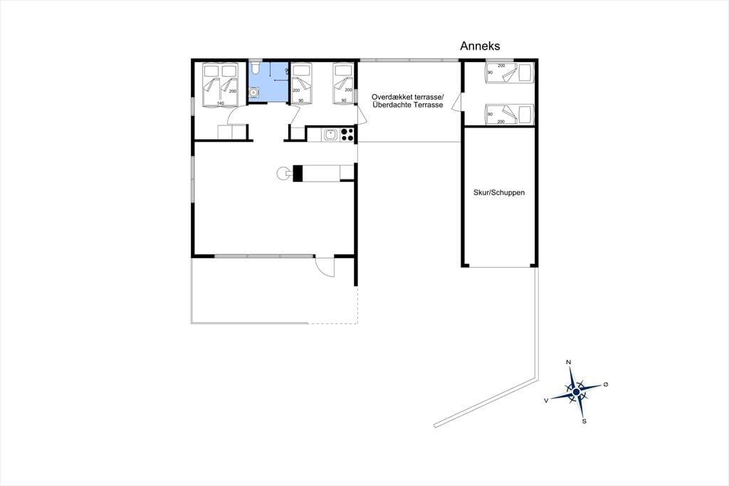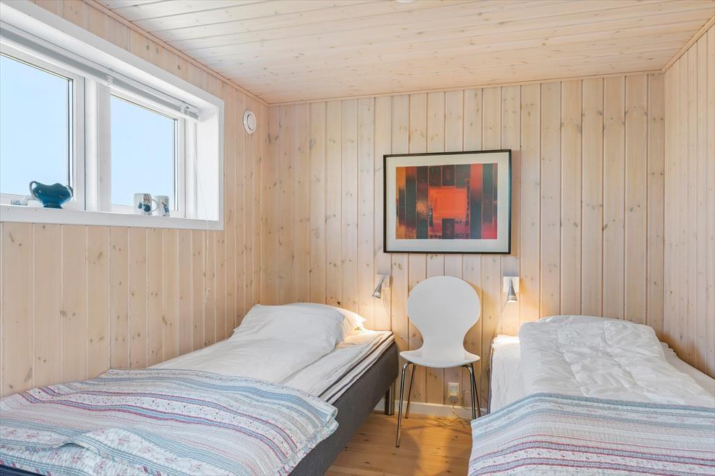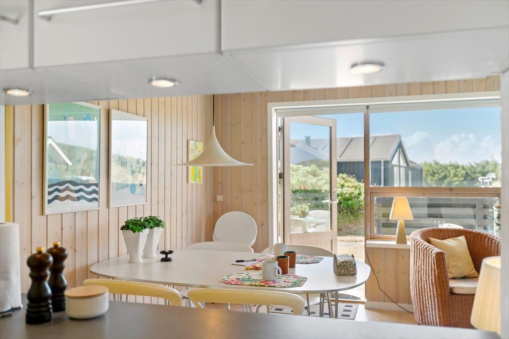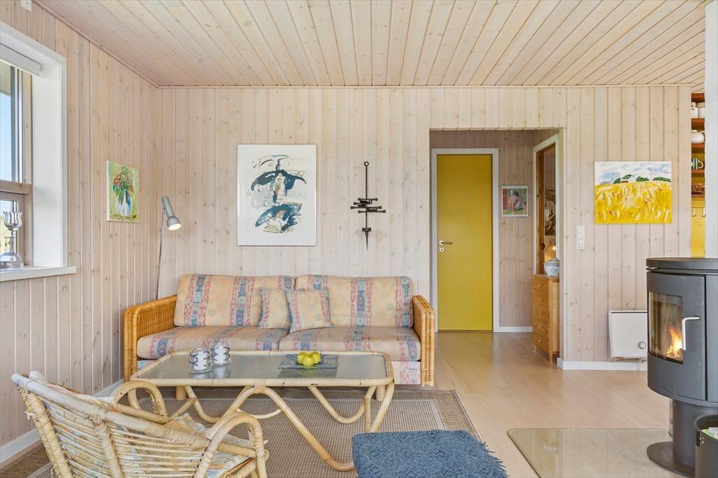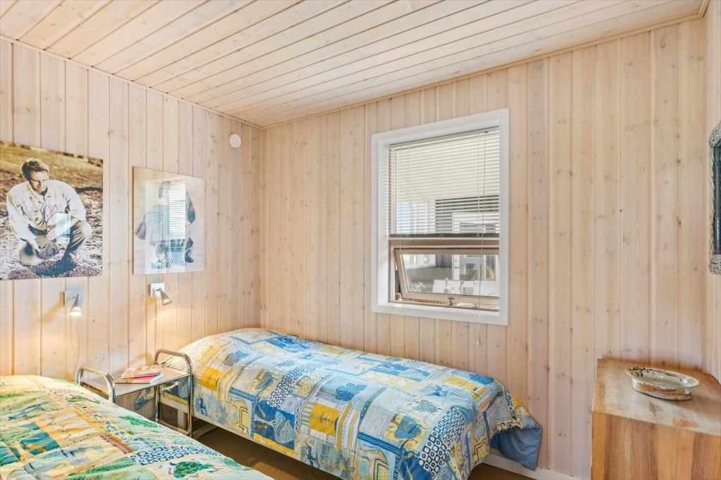 Med sådan en beliggenhed er det oplagt at tilbringe en stor del af ferien på stranden eller inde i Løkkens bymidte, der ligeledes ligger i kort gåafstand. Men det er nu også rart bare at tage den med ro hjemme i sommerhuset, der emmer af hygge og charme. Selv inden døre får I glæde af den idylliske beliggenhed, for fra stuen kan I kigge ud på de marehalmsklædte klitter og den blå himmel, mens I slapper af i sofaen nær brændeovnen eller spiller brætspil ved spisebordet. Køkkenet er integreret med stuen, så det er nemt at smutte hen for at få en refill i kaffekoppen eller sætte aftensmaden over på komfuret. Et badeværelse med bruser og to soveværelser hører med til planløsningen, og så er der endda ekstra senge i annekset, hvis dele af selskabet foretrækker at overnatte der.