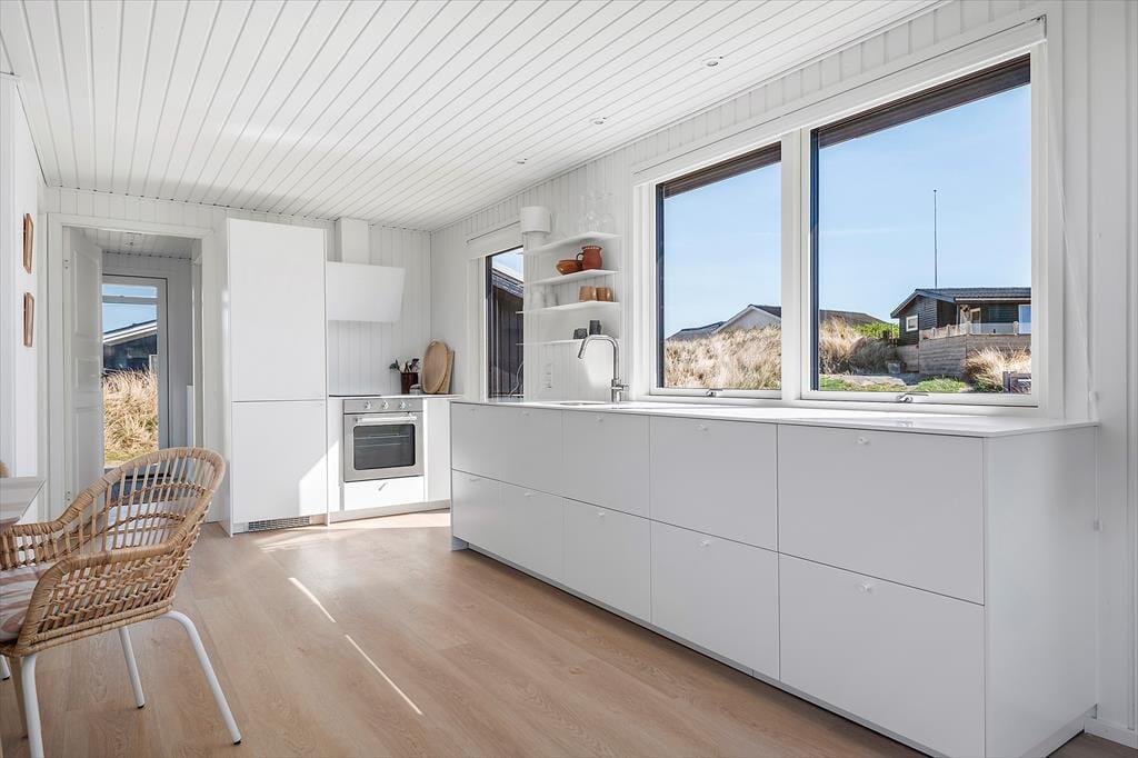 Når du træder indenfor i sommerhuset, bliver du mødt af en lys og stilfuld indretning, der er både smagfuld og moderne. Hver eneste detalje er nøje udvalgt under den omfattende renovering, der fandt sted i 2025. De store vinduer i opholdsrummet skaber et naturligt lysindfald, som giver en behagelig atmosfære, mens du slapper af med din familie eller venner. Den åbne planløsning mellem køkken og stue giver mulighed for at samles, uanset om du er i gang med at tilberede et måltid eller nyder samtalen. Her kan du tage en pause fra hverdagen og lade roen sænke sig. Sommerhuset er perfekt til at skabe de hyggelige ferieminder, der holder længe.