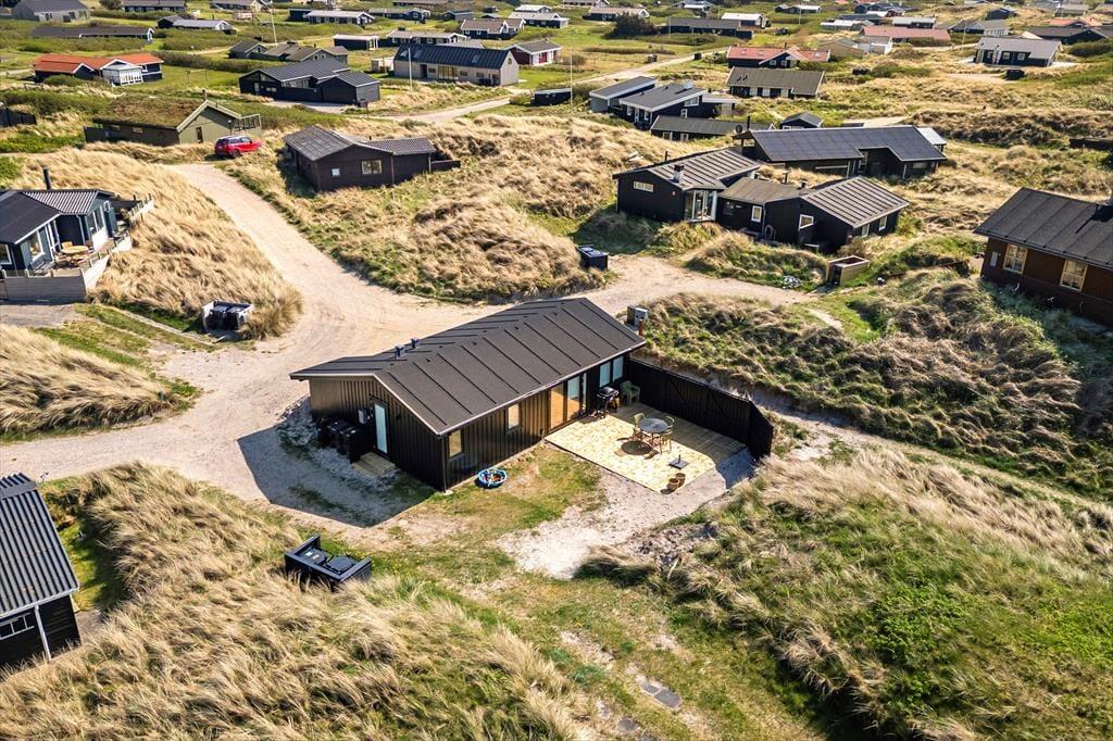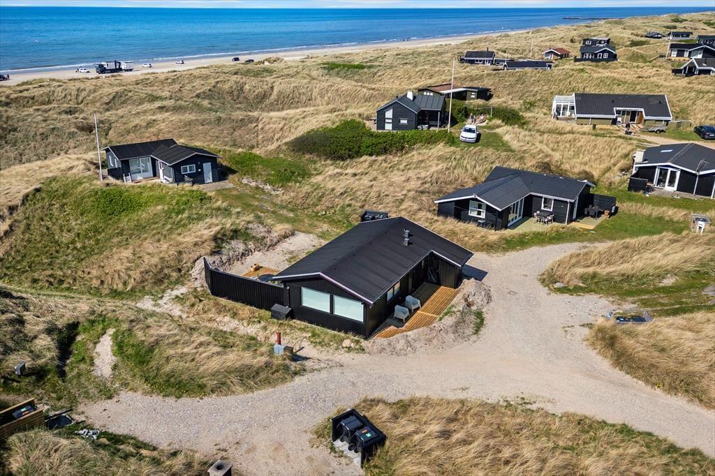 Udenfor venter en dejlig terrasse, hvor du kan tilbringe timevis med at nyde den friske luft og den hyggelige atmosfære. Den rummelige terrasse er indrettet til både afslapning og hyggelige måltider under åben himmel. Her kan du sidde med en god bog, spille kort eller grille, mens du mærker solen varme din hud. Den omkringliggende have indbyder til både afslapning og leg, og med kort afstand til stranden er det let at skifte fra solbadning til en frisk dukkert i Vesterhavet. Det er den perfekte base til at nyde både stille og aktive stunder i naturen.
