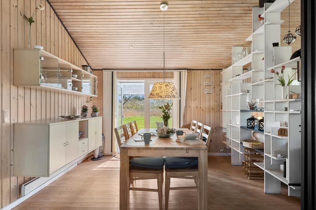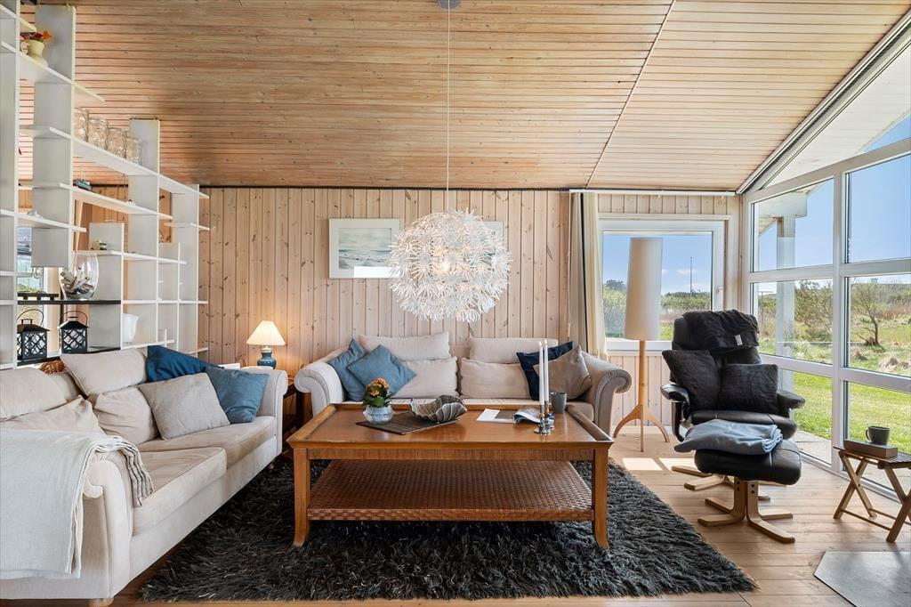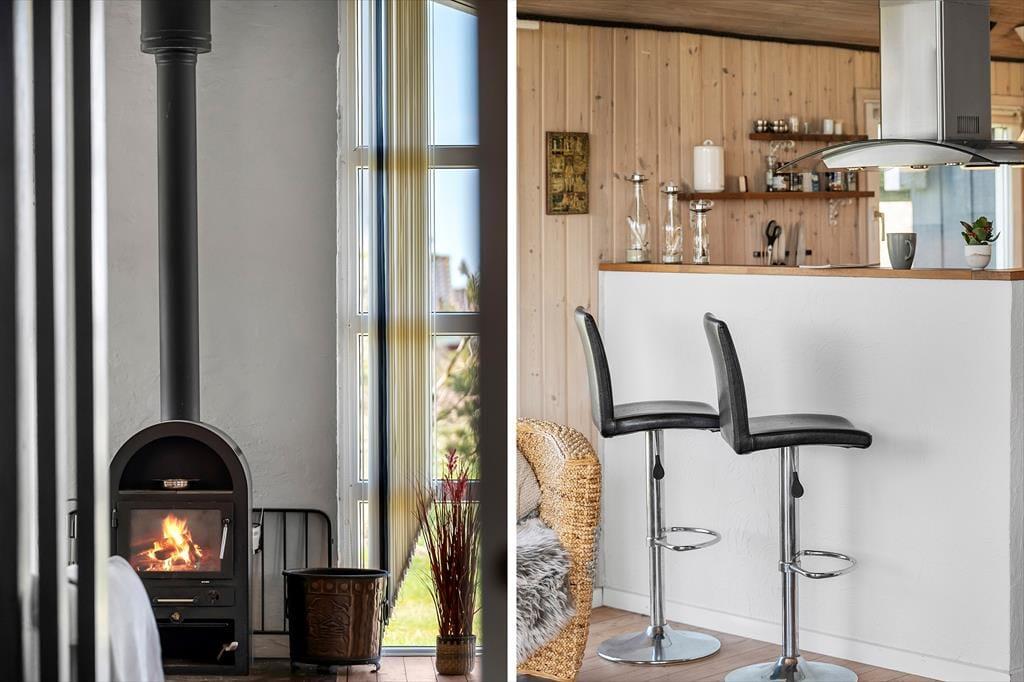 Sommerhus i Løkken Strand og By, Nordjylland, med plads til 4 voksne og 1 husdyr. Der er en hyggelig indretning med bl.a. brændeovn, og du finder desuden vaskemaskine og opvaskemaskine i boligen.