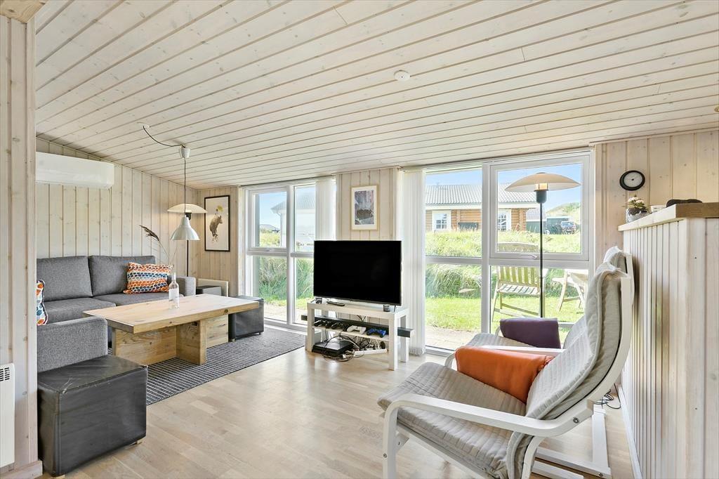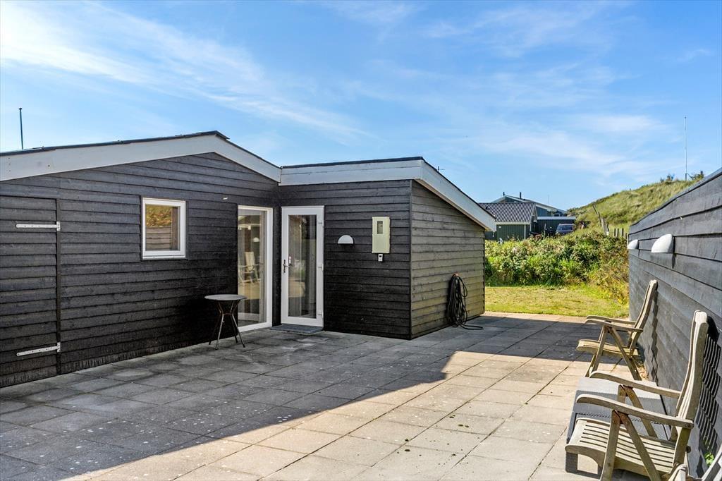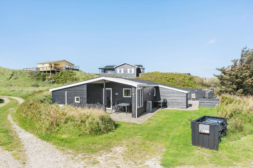I bunden en lukket vej står dette fine sommerhus og byder dig velkommen til en skøn ferie. Selvom adressen er dejligt tilbagetrukket, har du nem adgang til både byens og strandens glæder, for der er ikke meget mere end 300 meter til Vesterhavet, og på en kort gåtur kan du være fremme ved Løkkens hyggelige centrum.