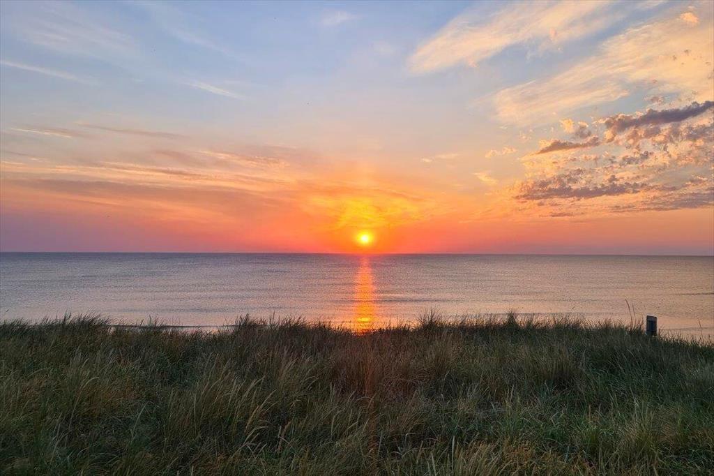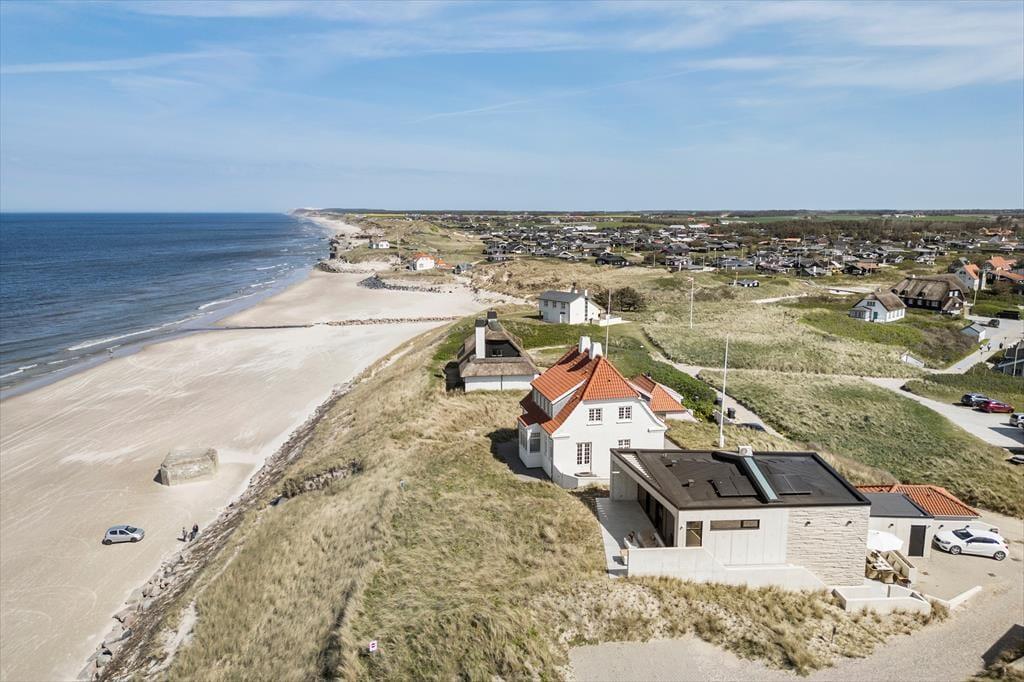 Der er terrasser på begge sider af huset, så det er nemt at finde den helt rette opholdsplads. Det sydøstlige opholdsmiljø er dejligt solrigt først på dagen, og her sørger klitterne og selve huset for læ, hvis det skulle blæse ind fra havet. Panoramaudsigten er til gengæld intet mindre end fantastisk fra den nordvestvendte terrasse, for du sidder lige ud mod den bølgende marehalm og med frit udsyn til hav og høj himmel – og det er selvfølgelig også her, du skal opholde dig, når solen går ned og maler omgivelserne i orange og rosa farvetoner.
