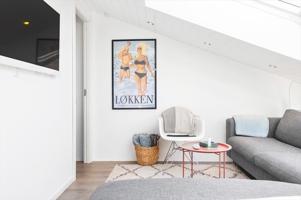 Hvordan vil du allerhelst begynde din dag, når du holder ferie i Løkken? Lyder en løbetur i strandkanten eller en svømmetur i en swimmingpool tillokkende? Eller vil du hellere spise brunch i bymidten – eller måske bare sove længe i en komfortabel seng? Hvis du ikke kan vælge, er der ingen grund til, at du beslutter dig lige nu, for alle scenarier kan virkeliggøres, når ferien foregår i dette velindrettede sommerhus, der ligger i et feriekompleks få hundrede meter fra Vesterhavet.