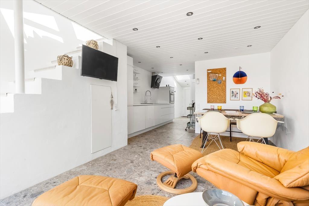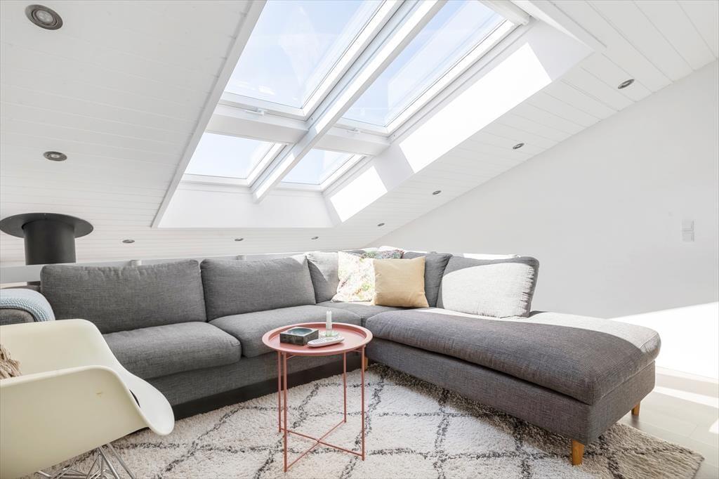 Mere præcist er der tale om at gedigent rækkehus, der er opført i røde mursten og har en velfungerende planløsning til fire personer. Efter seneste renovering har alle rum en lys og indbydende indretning, og der er mange lækre detaljer at bemærke – se for eksempel det stilfulde badeværelse såvel som det store ovenlysvindue, der inviterer solen ind til førstesalens sofahjørne. Også i stueplan er lysindfaldet skønt i det store køkken-alrum, hvor du og familien kan samles til lækre måltider og hygge nær brændeovnen. Er det tid til at sige godnat, kan du gå til ro på et af de tre soveværelser, hvoraf et ligger i stueplan og to på førstesalen.
