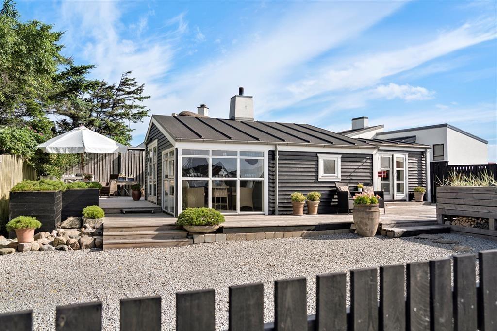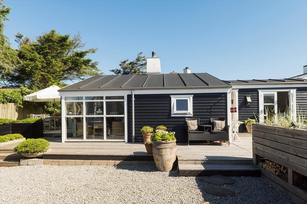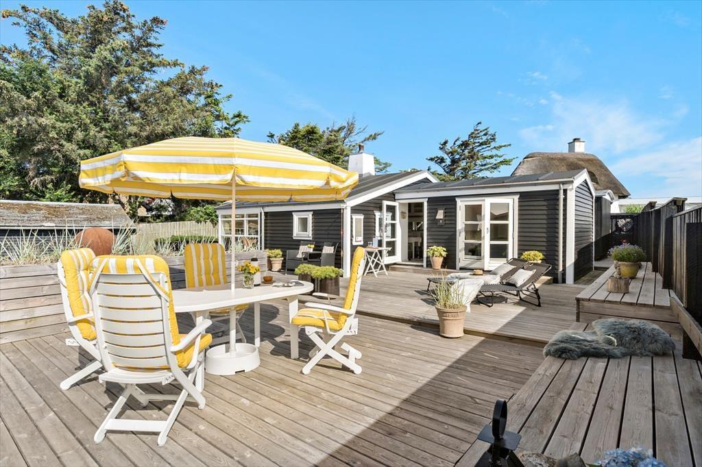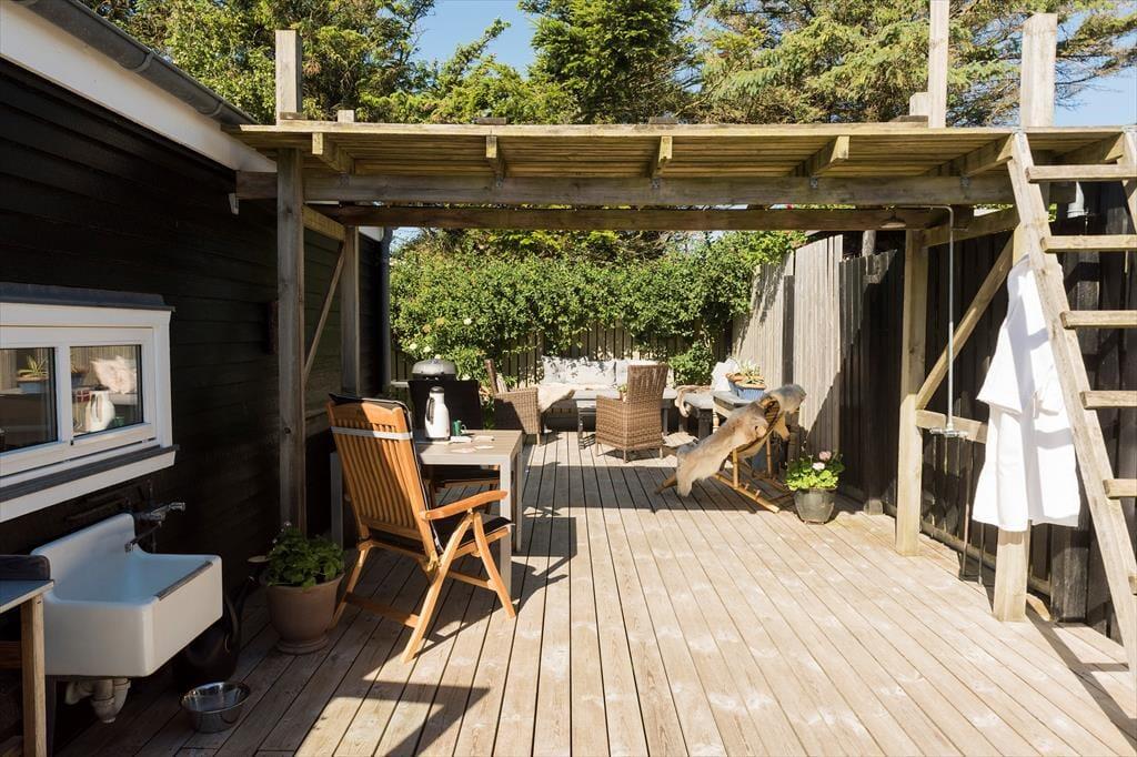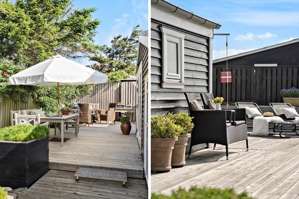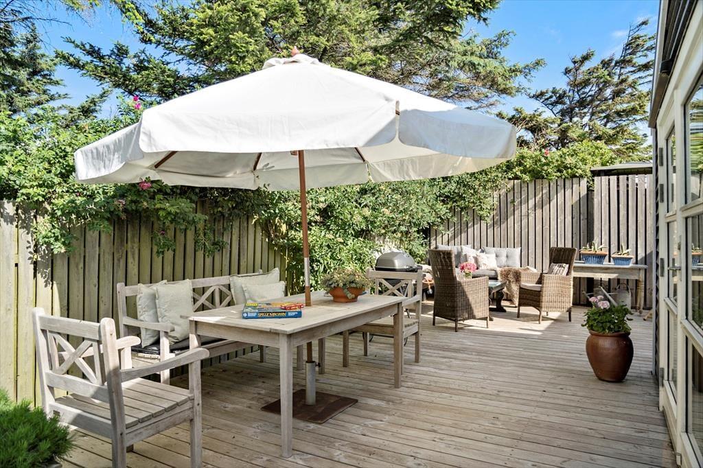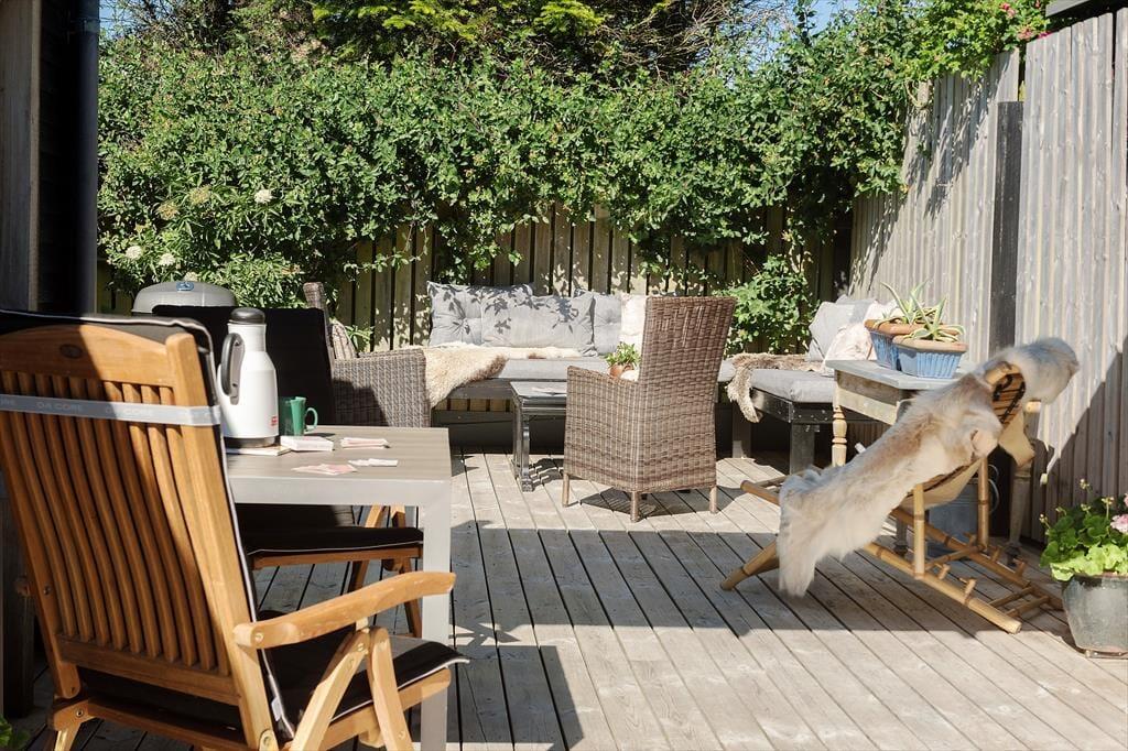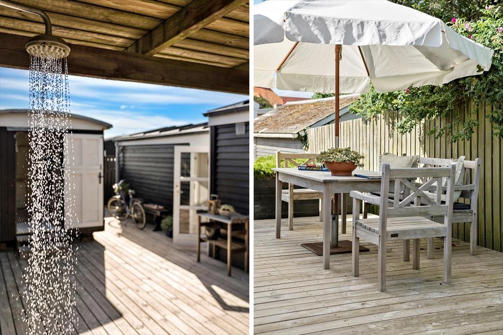 Dette sommerhus har et fantastisk terrassemiljø med flere hyggelige terrasseområder, hvor du kan nyde solen hele dagen. Terrasserne giver rig mulighed for at finde både sol og skygge, og der er også en udendørs bruser med både koldt og varmt vand, så du kan tage en forfriskende skylle efter en dag på stranden. Det charmerende badehus, der fungerer som anneks, giver ekstra plads og muligheder for at nyde udendørslivet. Haven er ideel til leg og afslapning, og der er også mulighed for at parkere på grunden, hvilket gør det nemt at komme til og fra huset.