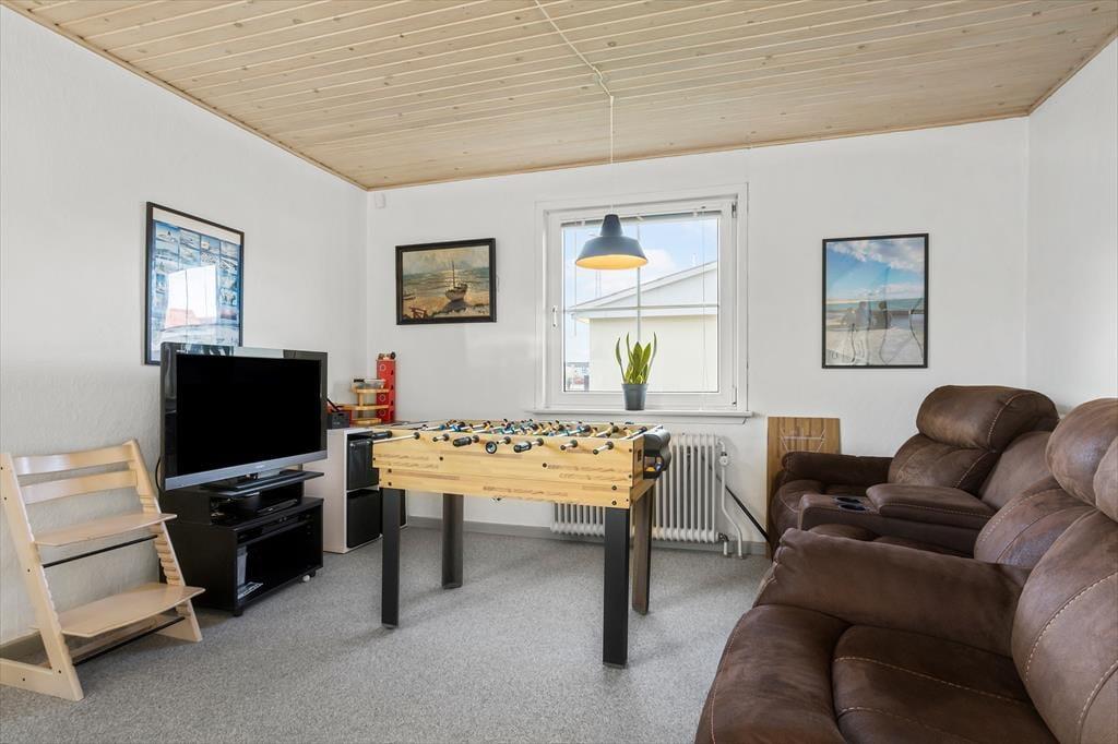 Fra det øjeblik du træder indenfor i dette hyggelige byhus, vil du mærke den varme og indbydende atmosfære. Huset byder på tre dejlige værelser og to badeværelser, hvoraf det ene er nyrenoveret og indrettet med sans for detaljer. Det veludstyrede køkken inviterer til fælles madlavning med lokale råvarer, mens den store stue er det oplagte samlingspunkt. Her kan I udfordre hinanden i bordtennis, pool eller bordfodbold og skabe mange sjove stunder sammen. De store vinduespartier sikrer et skønt lysindfald, som fylder rummene med liv og energi dagen igennem, og når mørket falder på, kan I slappe af i de bløde sofaer og planlægge næste dags eventyr.
