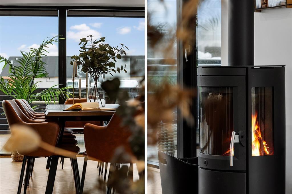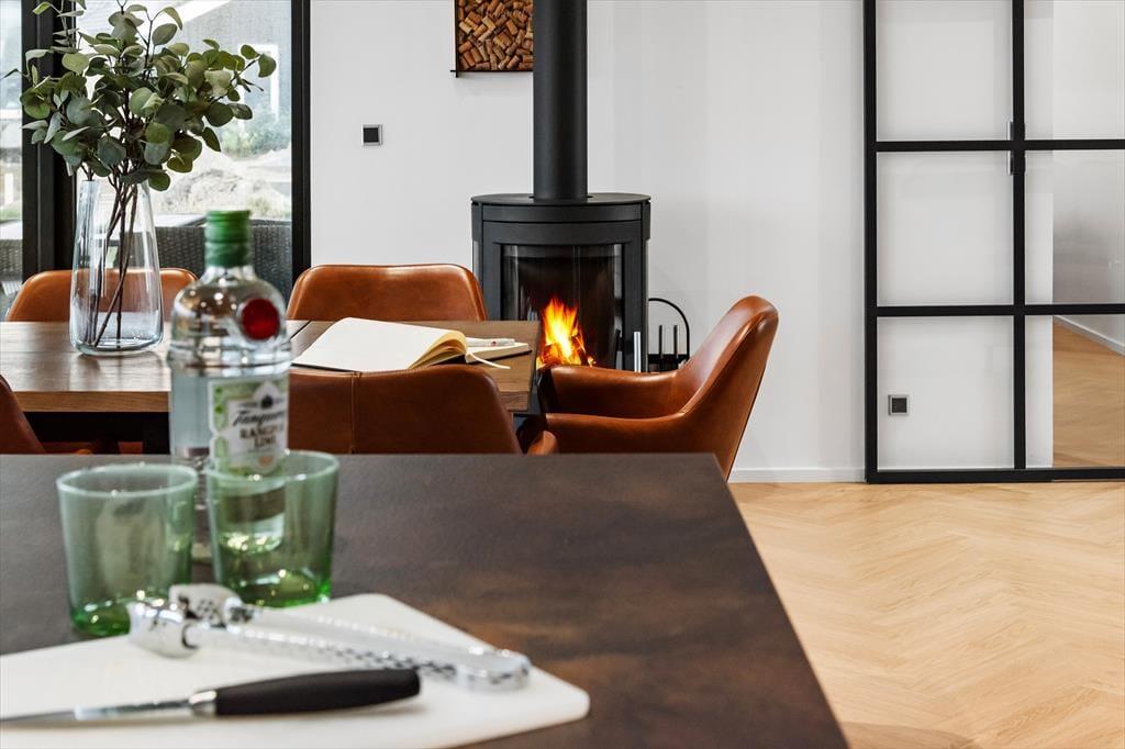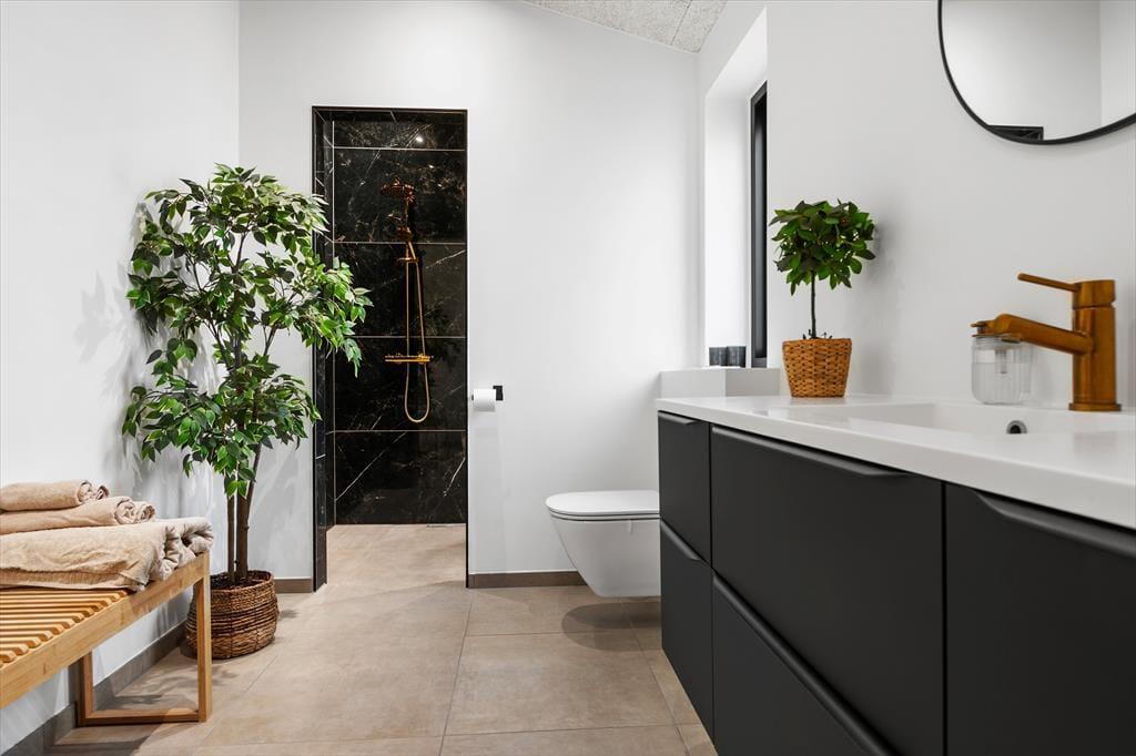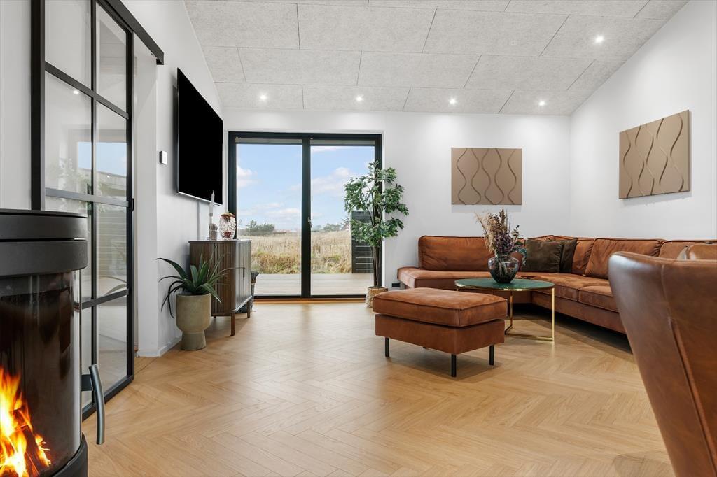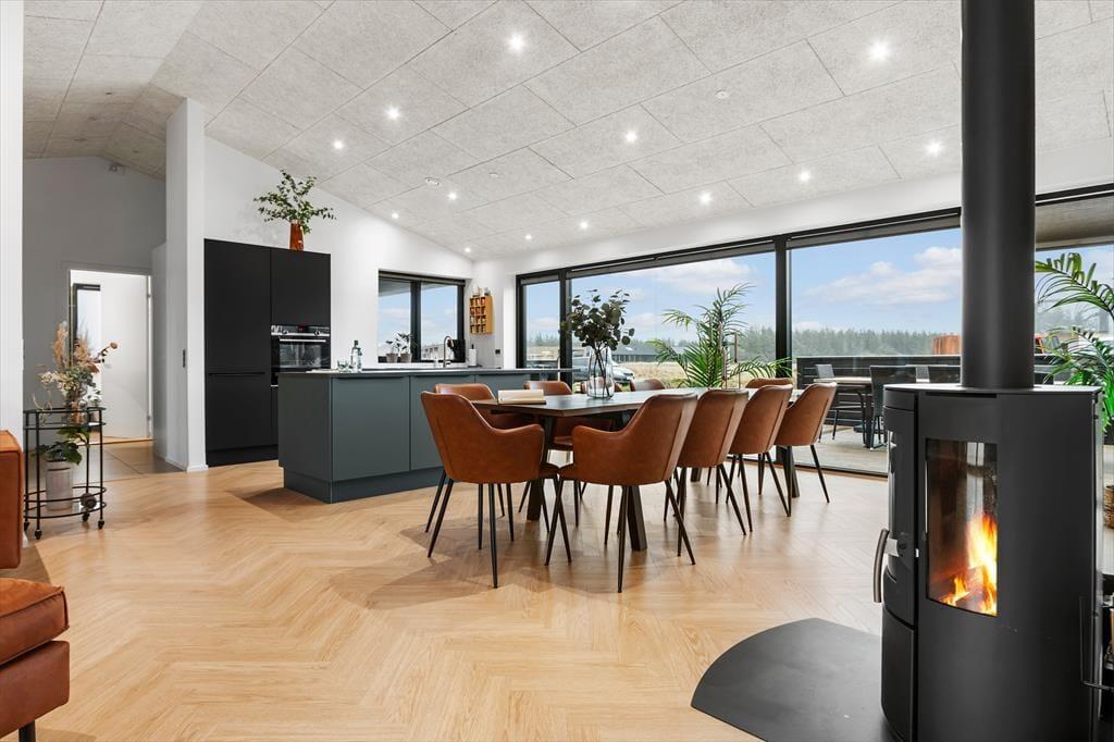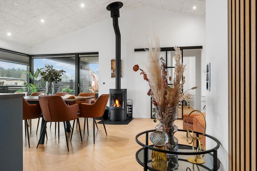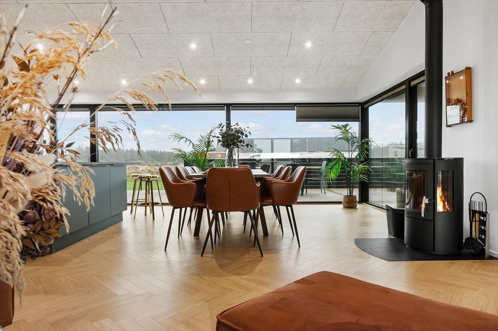 Indenfor møder du et stilrent og moderne hus med åbne rum og masser af lys. De store vinduer giver et flot lysindfald og åbner op til de smukke omgivelser, som kan nydes fra både stuen og køkkenet. Her er der plads til samvær og hygge, når I tilbereder lækre måltider i det veludstyrede køkken, der har alt, hvad du behøver for at lave mad med lokale råvarer. Sommerhuset rummer tre gode soveværelser og to luksuriøse badeværelser, så alle kan få deres egen plads til afslapning og komfort. Og hvis I har lyst til at aktivere jer, har I et aktivitetsrum i annekset, hvor I kan spille, hygge og more jer sammen.