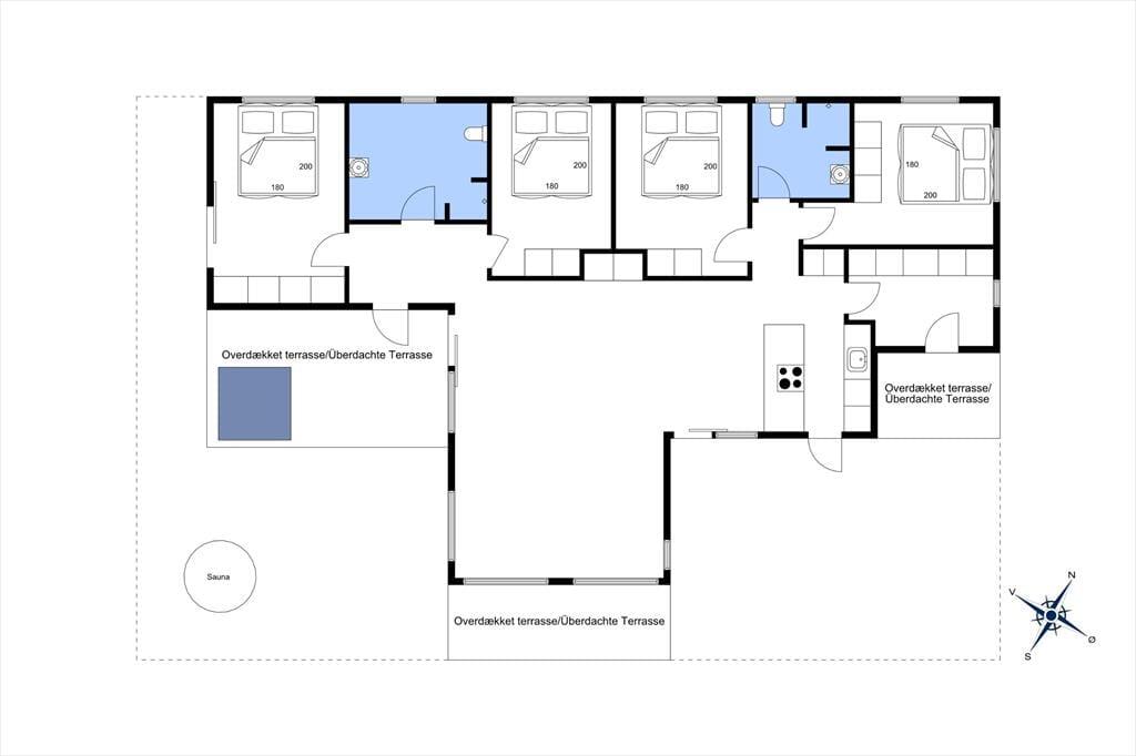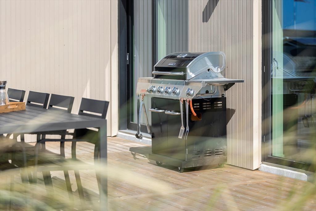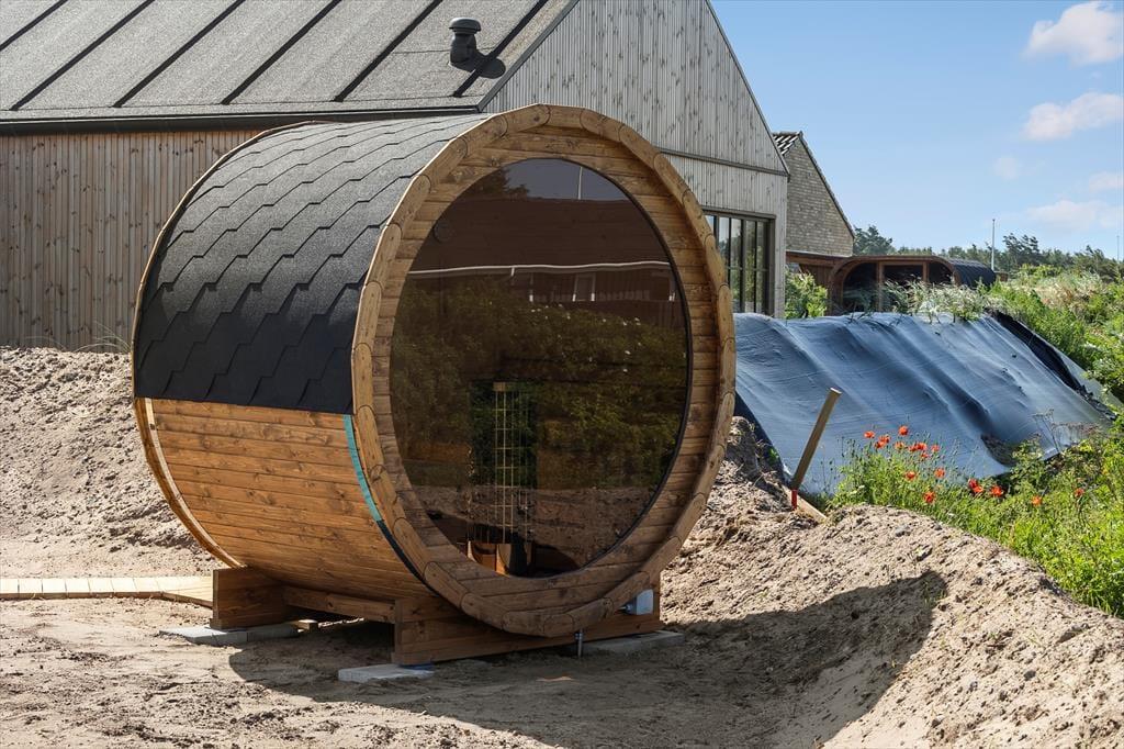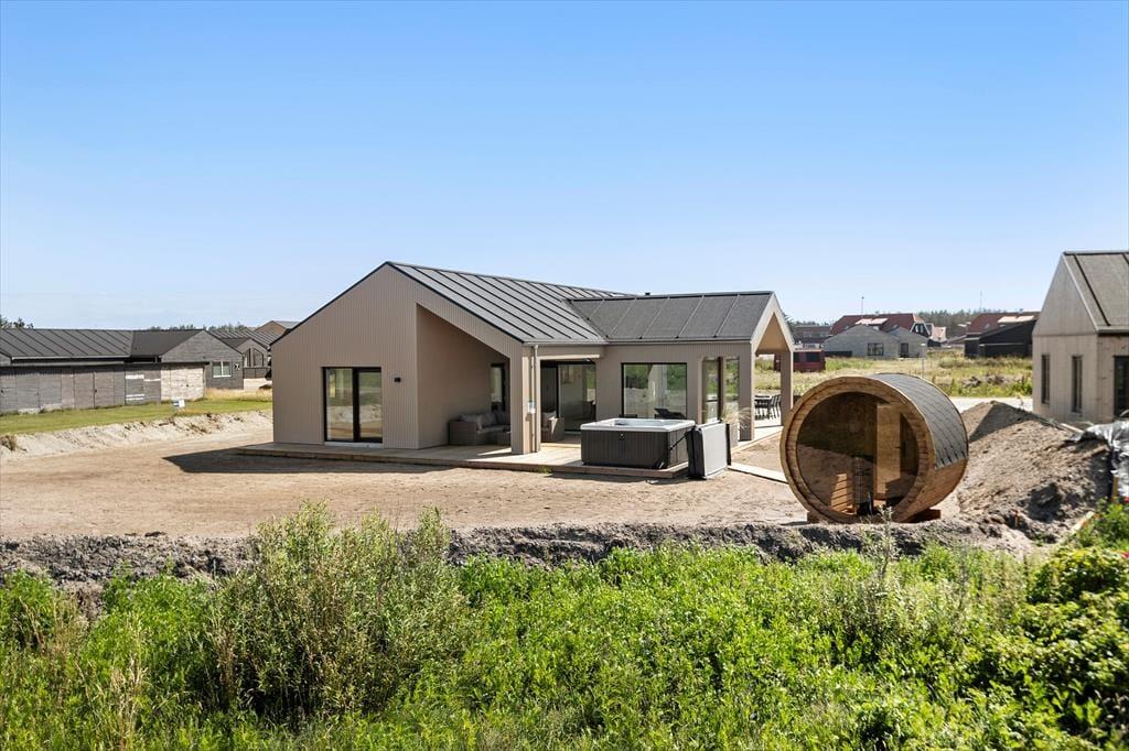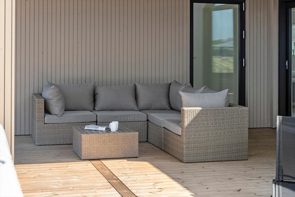 Den store terrasse er en af husets absolutte højdepunkter, hvor du kan nyde solen hele dagen. Uanset om du slapper af på den overdækkede del af terrassen eller søger solen på den åbne del, er det den perfekte base til at nyde de varme sommeraftener. Børnene kan lege på græsplænen, mens du tilbereder lækre måltider på grillen, og når mørket falder på, er der intet bedre end at samles om et glas vin under stjernerne, hvor det udendørs spabad også kan benyttes. Med terrassen tæt på huset er det let at få den bedste udsigt og samtidig være tæt på den indbydende bolig.