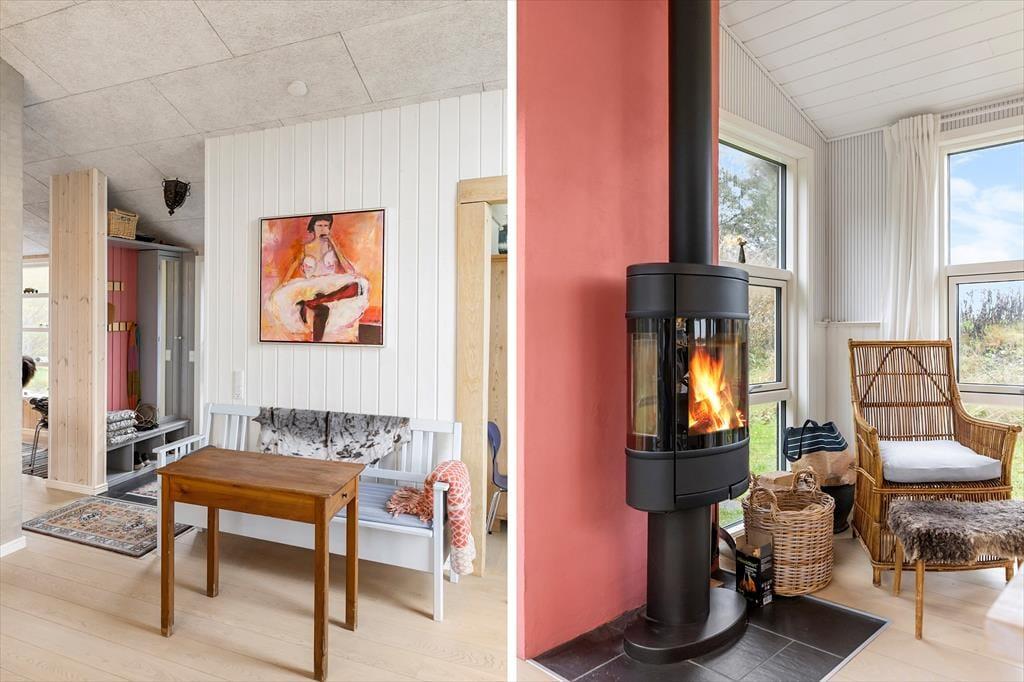 Når du træder ind i sommerhuset på Ane Mariesvej 20, mærker du straks den afslappede atmosfære. Husets hjerte er det rummelige køkken, hvor der er god plads til at tilberede måltider sammen. Her kan du lave morgenmaden, mens duften af frisk kaffe breder sig, og snakken går hen over køkkenbordet. Den hyggelige tv-stue med gaspejs indbyder til afslappede aftener, hvor du kan synke ned i sofaen og nyde flammernes bløde skær. Udestuen med brændeovn er et helt særligt samlingspunkt – her kan du sidde året rundt og mærke varmen brede sig, mens du kigger ud på haven. Huset rummer desuden gode soveværelser, hvoraf det ene er indrettet med en komfortabel elevationsseng – perfekt til en rolig nattesøvn efter en lang dag ved havet. Sommerhuset har både et badeværelse samt et praktisk gæstetoilet, hvilket gør det nemt og bekvemt for hele familien.