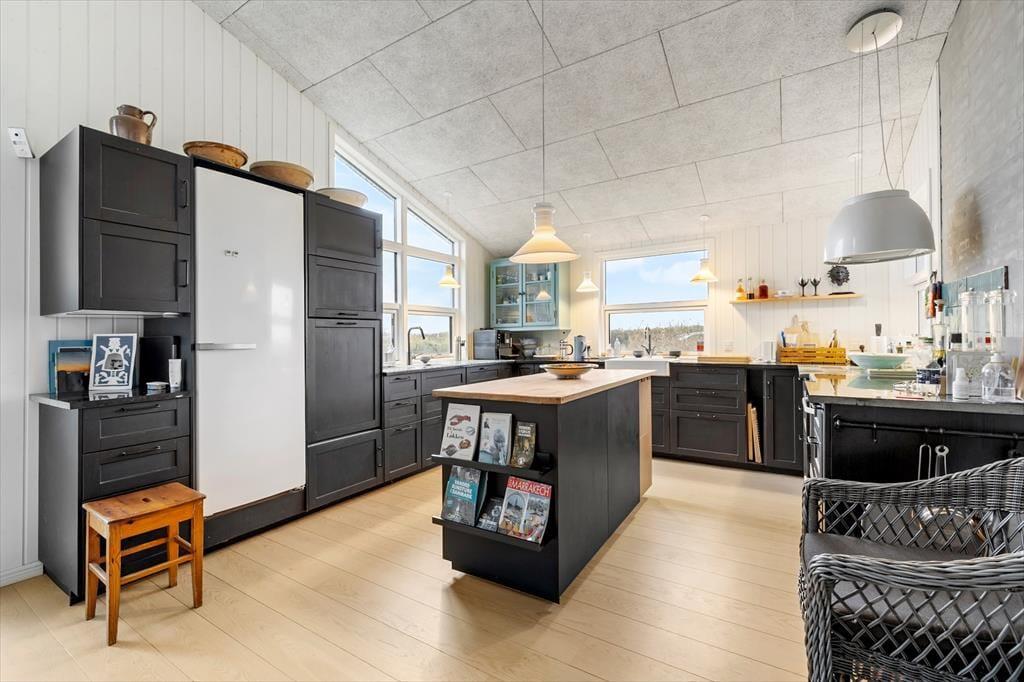 Udenfor venter en dejlig, ugeneret have, hvor både børn og hunde kan boltre sig frit bag det indhegnede hegn. På de solrige dage kan du slappe af på terrassen med en bog i hånden og høre fuglene synge i buskene omkring dig. Det udendørs køkken gør det nemt at tilberede aftensmaden under åben himmel – måske friske fisk fra Løkkens lokale fiskere eller den lokale slagter – mens du nyder den friske luft og duften af grill. Haven og terrassen ligger uforstyrret, så her kan I virkelig læne jer tilbage og mærke roen, som kun et sommerhusophold i Løkken kan give.