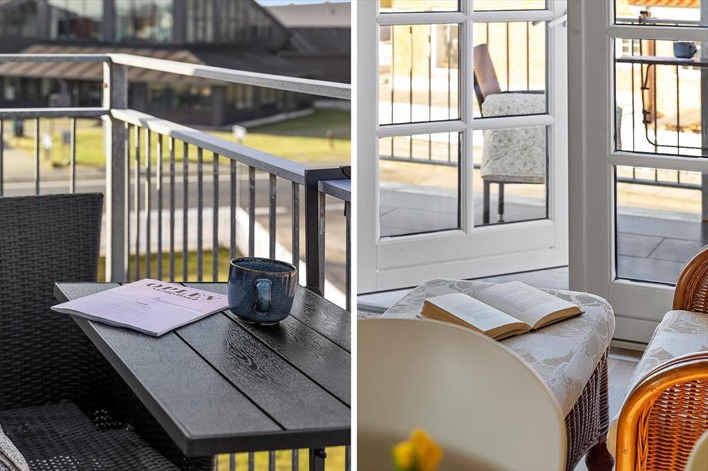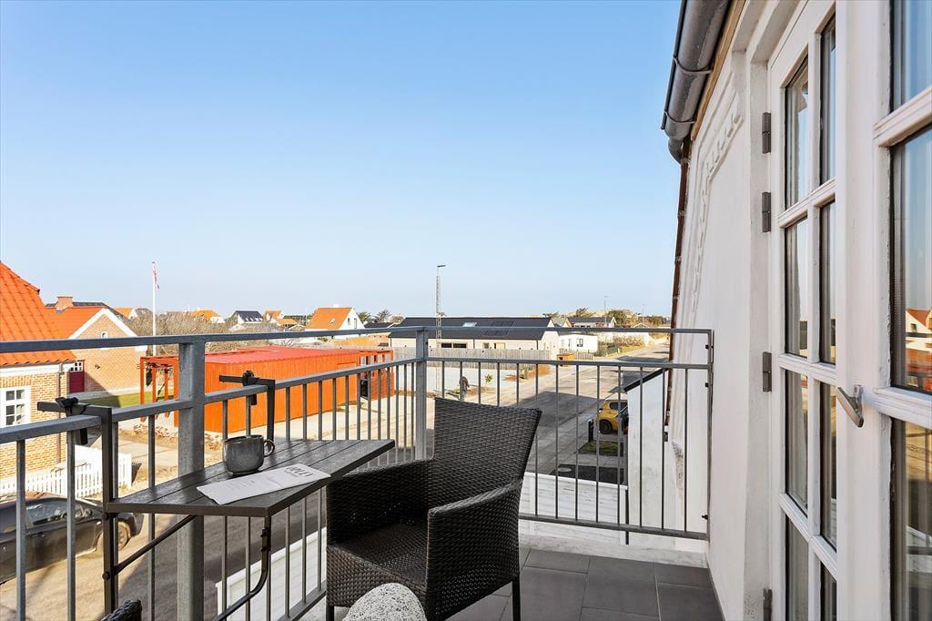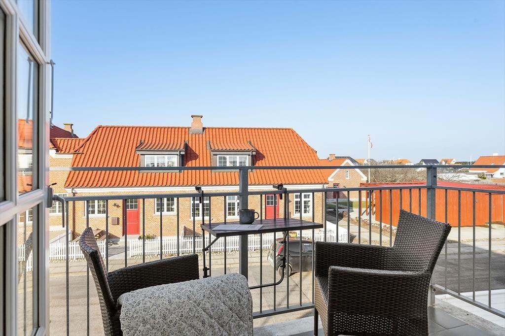 En af lejlighedens store kvaliteter er den dejlige altan, som giver dig mulighed for at nyde udelivet i private og rolige rammer. Her kan du lade blikket glide over omgivelserne, mens du mærker den friske havluft og hører byens liv på behagelig afstand. Altanen er det oplagte sted at begynde dagen med morgenmad i solen eller runde aftenen af med et glas vin, mens lyset langsomt dæmpes over Løkken. Den stemningsfulde indgang og ejendommens badehotelspræg bidrager til en særlig feriefølelse, hvor tempoet sænkes, og sanserne skærpes. Her får du følelsen af at være på klassisk badeferie – med tid til fordybelse, afslapning og små pauser i det fri, hvor ferielivet kan nydes i dit eget tempo.