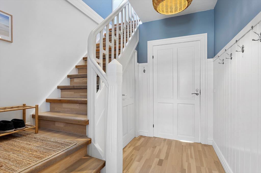 Harald Fishers Vej 49 A er et oplagt valg, hvis du drømmer om en afslappende ferie i hjertet af Løkken – tæt på både strand, byliv og stemningsfulde omgivelser. Denne lejlighed ligger på 1. sal og byder på en skøn kombination af klassisk feriestemning og moderne komfort, efter at den er blevet delvist moderniseret i 2025. Allerede ved ankomsten mødes du af en smuk indgang med tydelige referencer til de skønne badehoteller, som området er kendt for, og som sætter den helt rette ramme for ferien fra første skridt.