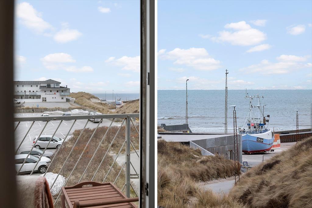 En af lejlighedens helt store forcer er den lækre altan med havudsigt. Her kan du starte dagen med en kop kaffe, mens du lader blikket glide ud over Vesterhavets blå nuancer og mærker den friske havluft fylde lungerne. Altanen er et skønt fristed, hvor du kan nyde solens varme i løbet af dagen og følge solnedgangen, når himlen farves i gyldne og rosa toner. Det er det perfekte sted til både stille stunder med en god bog og hyggelige aftener med et glas vin. Til lejligheden hører også en egen parkeringsplads, så du nemt og bekvemt kan komme til og fra, uanset om dagens program byder på strandtur, udflugt eller indkøb i byen. Kombinationen af private rammer og den åbne udsigt mod havet skaber en helt særlig feriestemning, hvor tempoet automatisk sættes ned.