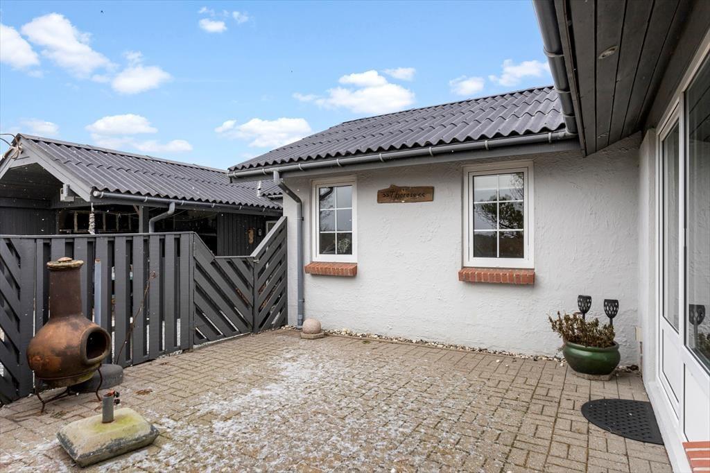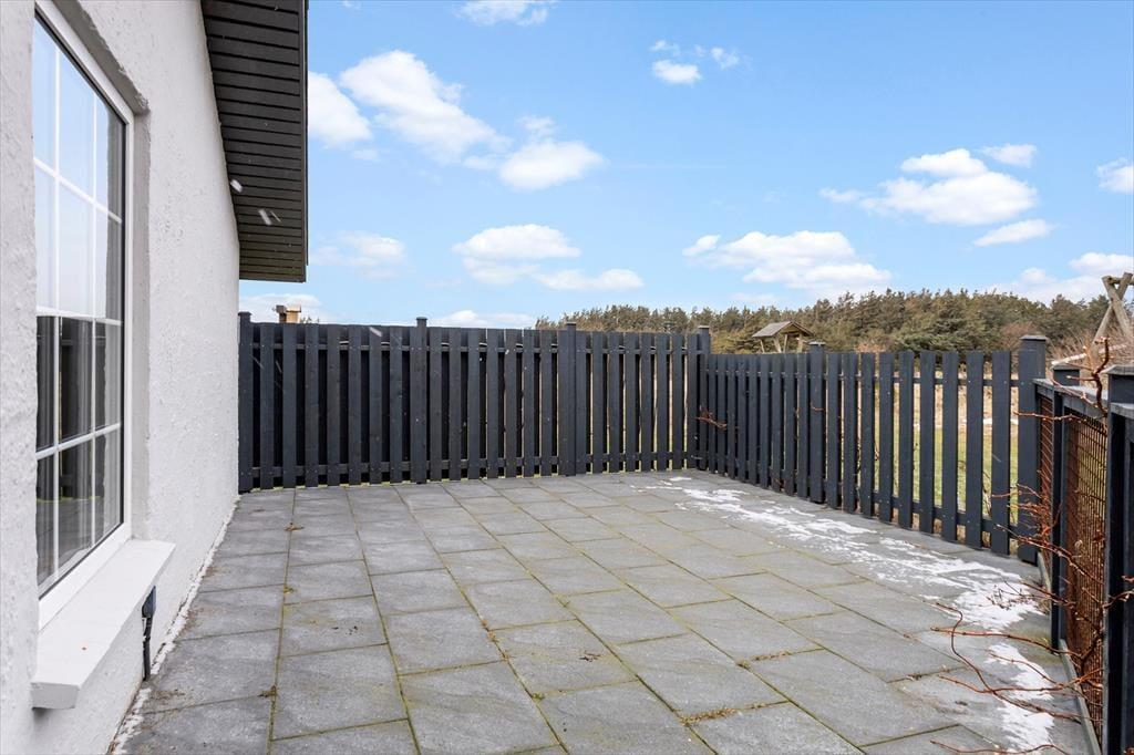 Rundt om sommerhuset venter dejlige terrasser, hvor ferielivet for alvor kan nydes under åben himmel. Her er der rig mulighed for at finde en solrig plet til formiddagskaffen eller en hyggelig krog i læ til eftermiddagens afslapning med en god bog. Når grillen tændes, kan du tilberede aftensmaden, mens du lytter til havets rolige brusen i baggrunden og mærker den friske vestenvind i håret. Terrasserne skaber en naturlig ramme om både stille stunder og hyggelige måltider sammen, og den omkringliggende natur giver en følelse af ro og frihed. Her kan børnene lege, mens de voksne læner sig tilbage og nyder feriens langsomme tempo.