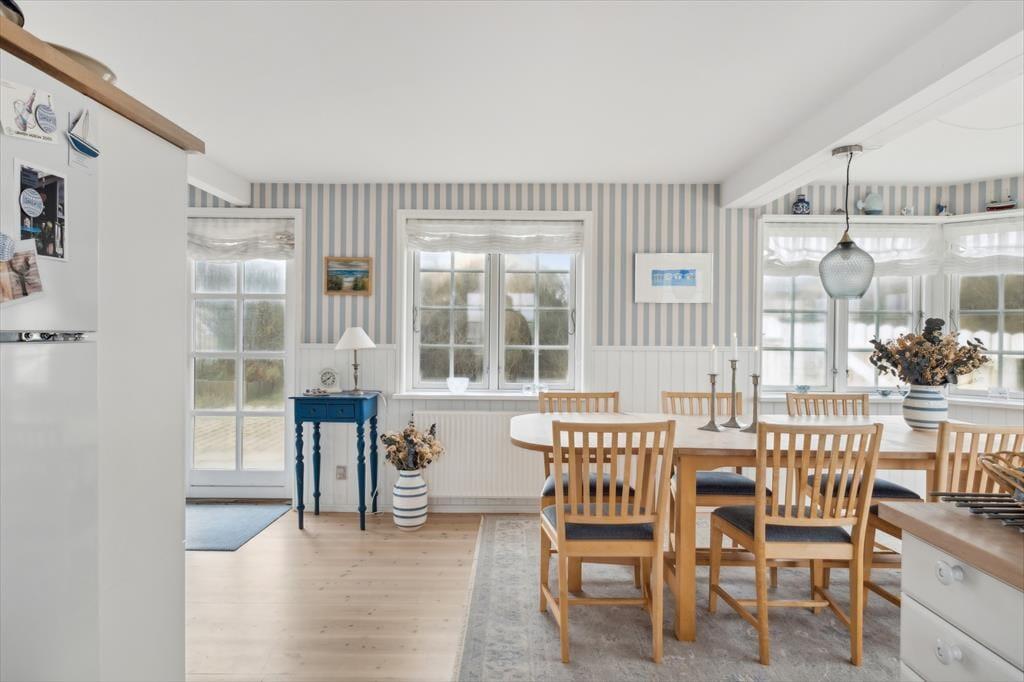 Sommerhus i Løkken Strand og By, Nordjylland, med plads til 6 voksne og 1 husdyr. Der er en hyggelig indretning, og du finder desuden vaskemaskine, opvaskemaskine og tørretumbler i boligen.