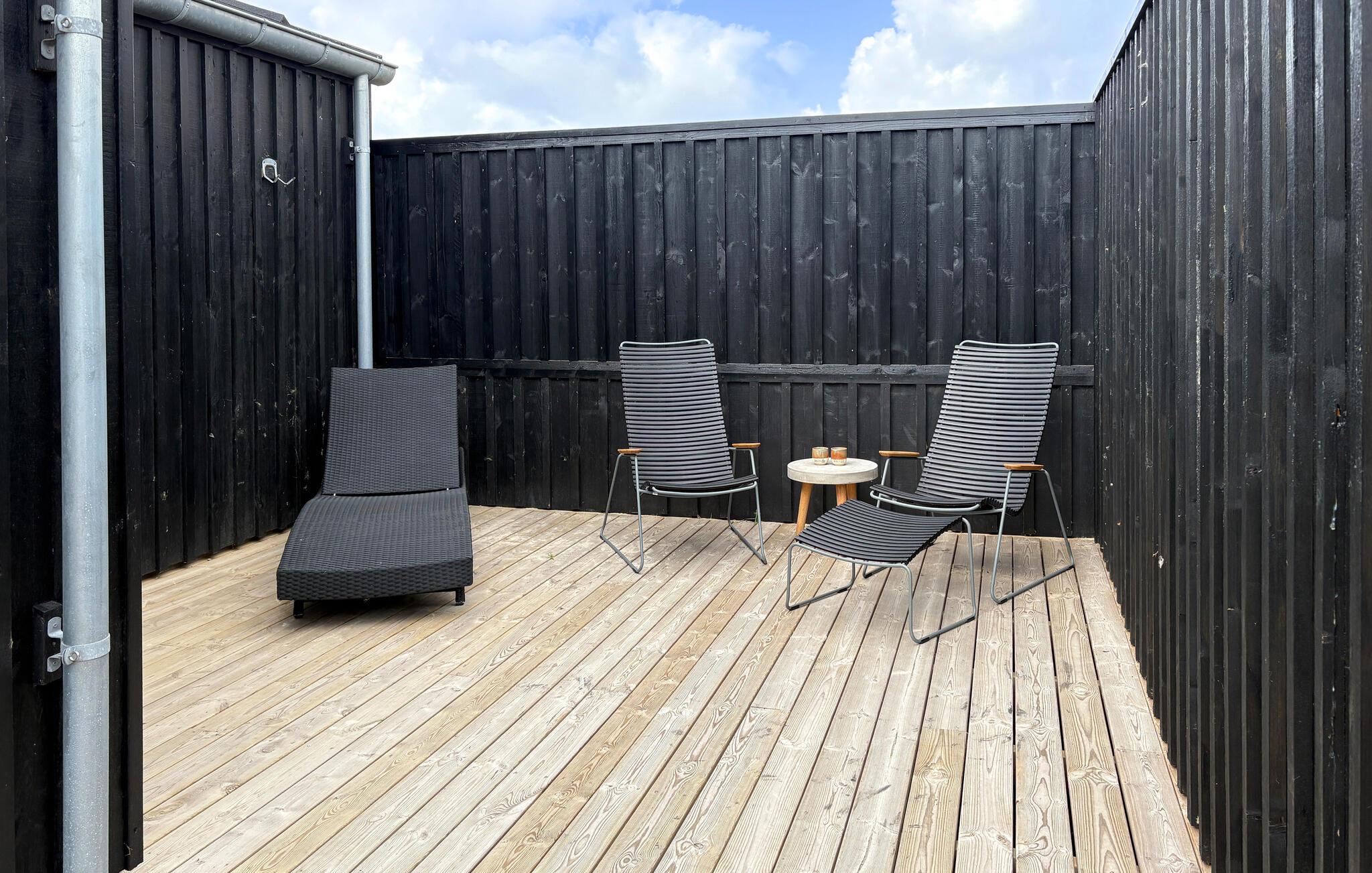 Brug den omliggende terrasse til at tilbringe dagen udendørs. Begynd dagene her med en kop kaffe eller tilbered lækre måltider i det udendørs køkkenområde om aftenen. Læn jer tilbage i loungeområdet og nyd den friske havluft.