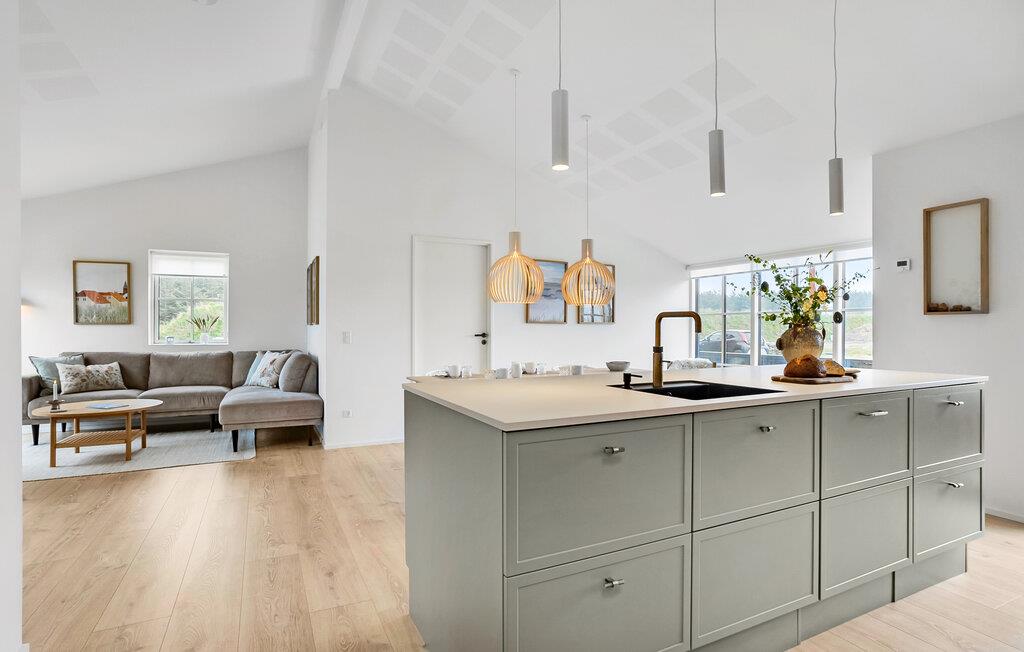 Moderne feriehus i Løkken tæt på strand og bymidte med udendørs køkken og hems.