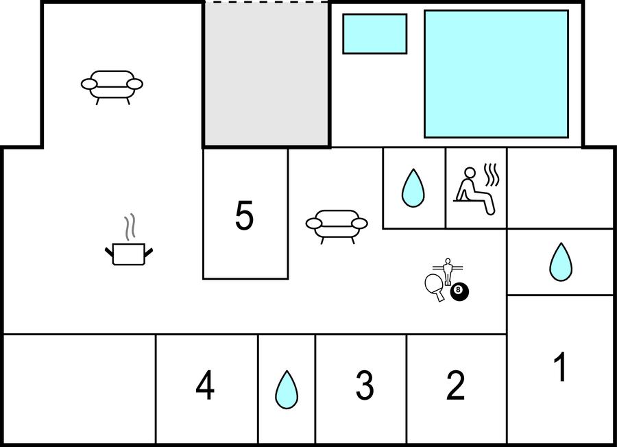 Dette sommerhus er noget helt særligt, for her kan I se frem til toplækre faciliteter og lidt ekstra wow-faktor over det hele. Udendørs kan I også glæde jer til skønne rammer, så sæt jer her med morgenmaden, grillretterne eller læn jer tilbage med en god bog i eftermiddagstimerne. Ud over spabad og sauna har huset også indendørs pool og poolbord.