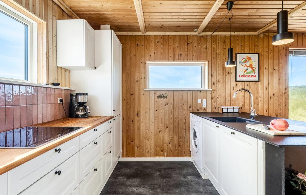 Velkommen til dette indbydende hus, hvor I kan nyde en afslappende ferie ved havet. Interiøret er udformet med lyst træ og udstråler en varm og afslappet atmosfære. Tilbring hyggelige timer i den behagelige sofa med at læse eller lytte til musik, eller tilbered lækre måltider i det moderne køkken. ¨