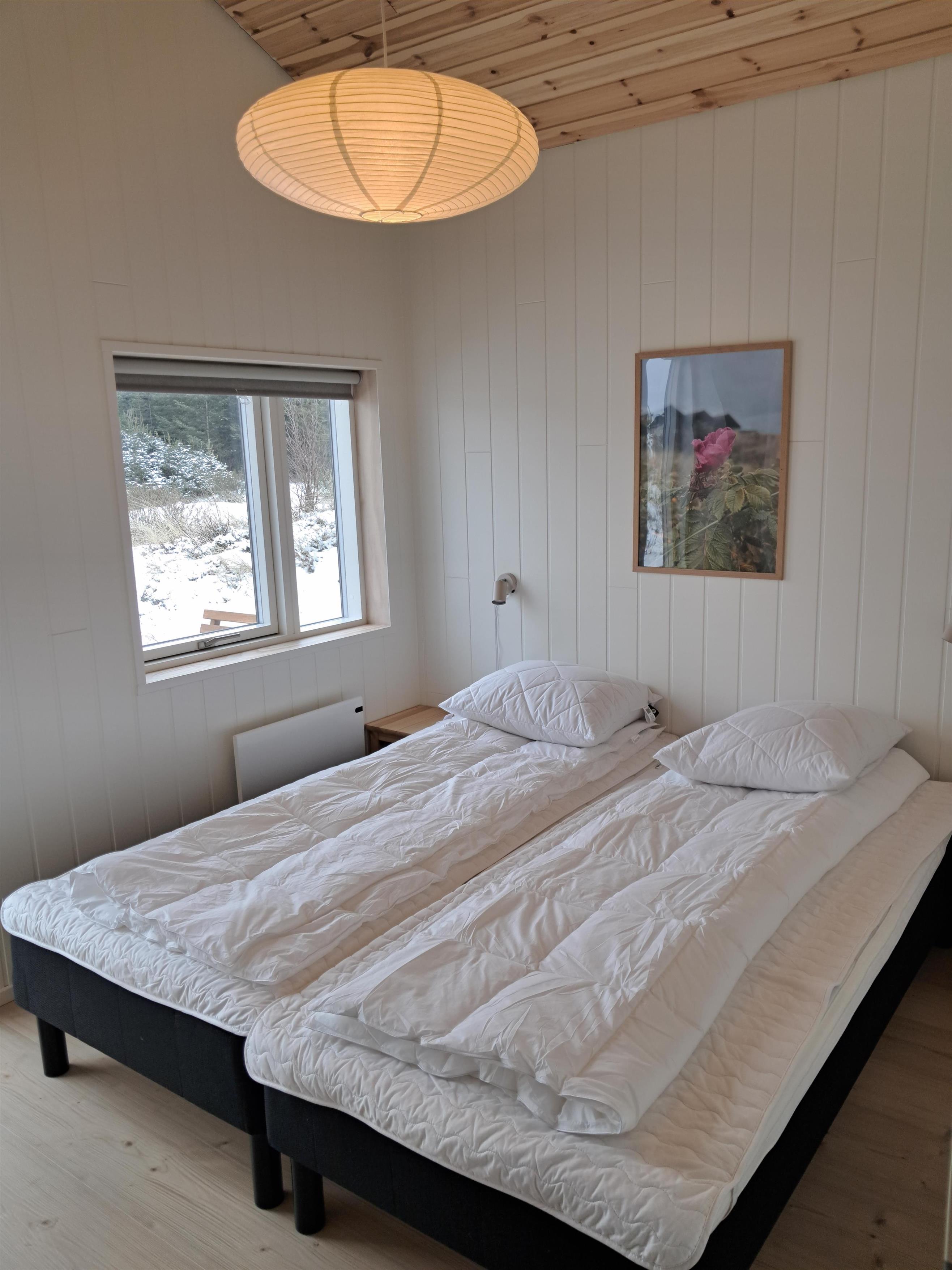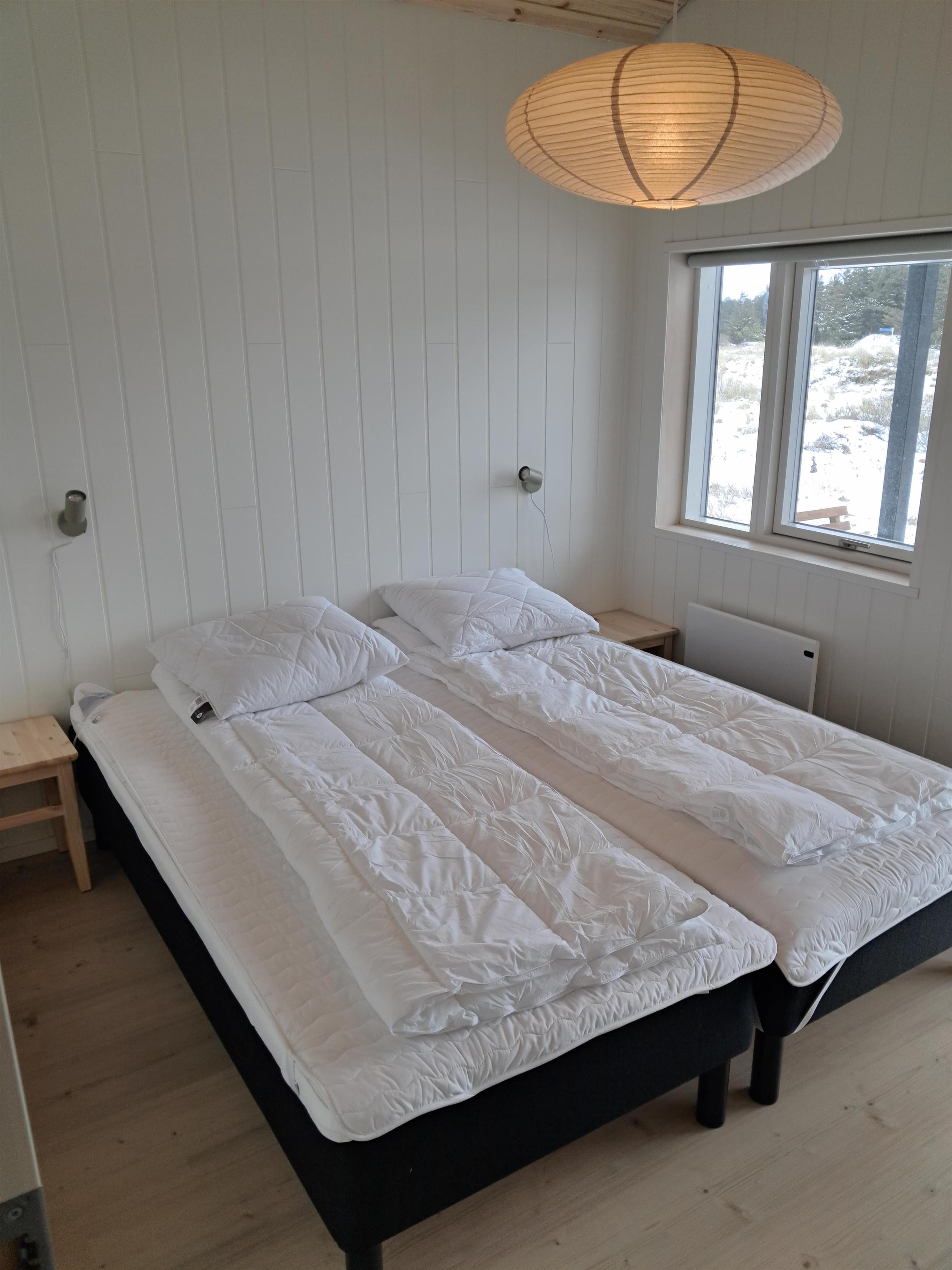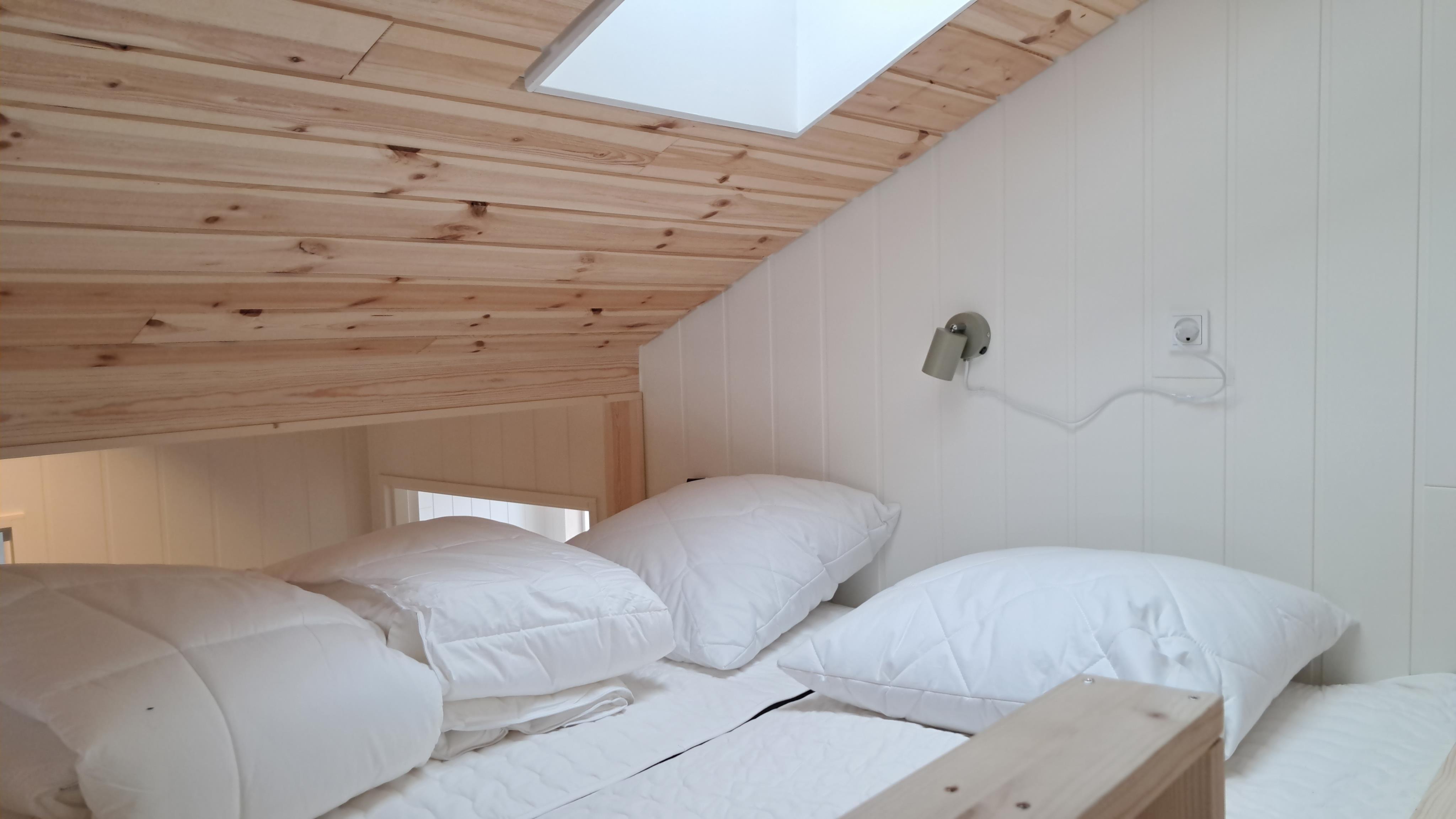 Sengefordeling: 3 værelser med 2 enkeltsenge (90x200 cm), 1 køjeværelse med 2 madrasser (90x200 cm), 1 værelse med dobbeltseng (160x200 cm), Hems med 2 madrasser (80x200 cm), Alkove med madras (160x200 cm).